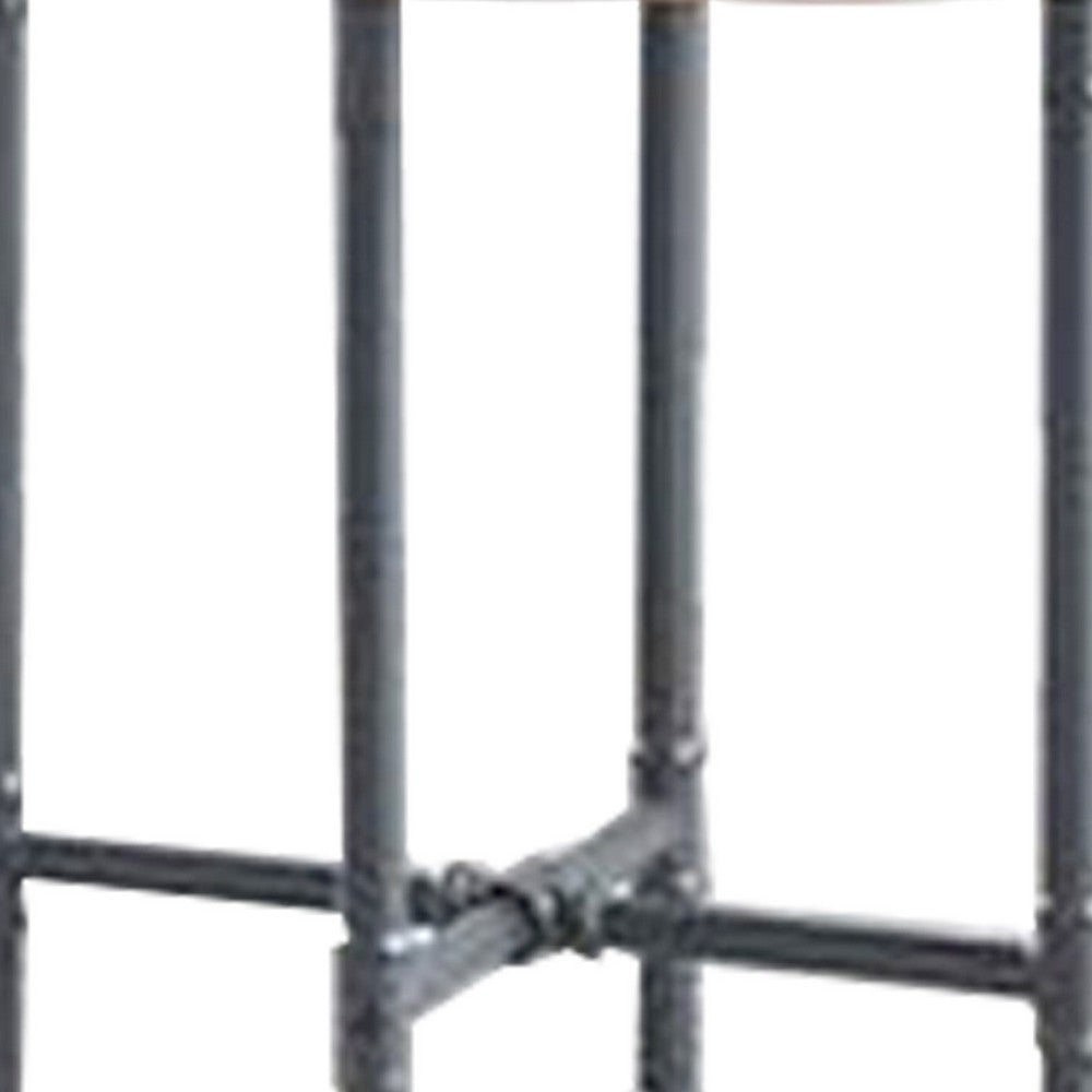 End Table with Round Glass Top and Metal Pipe Style Legs, Gray