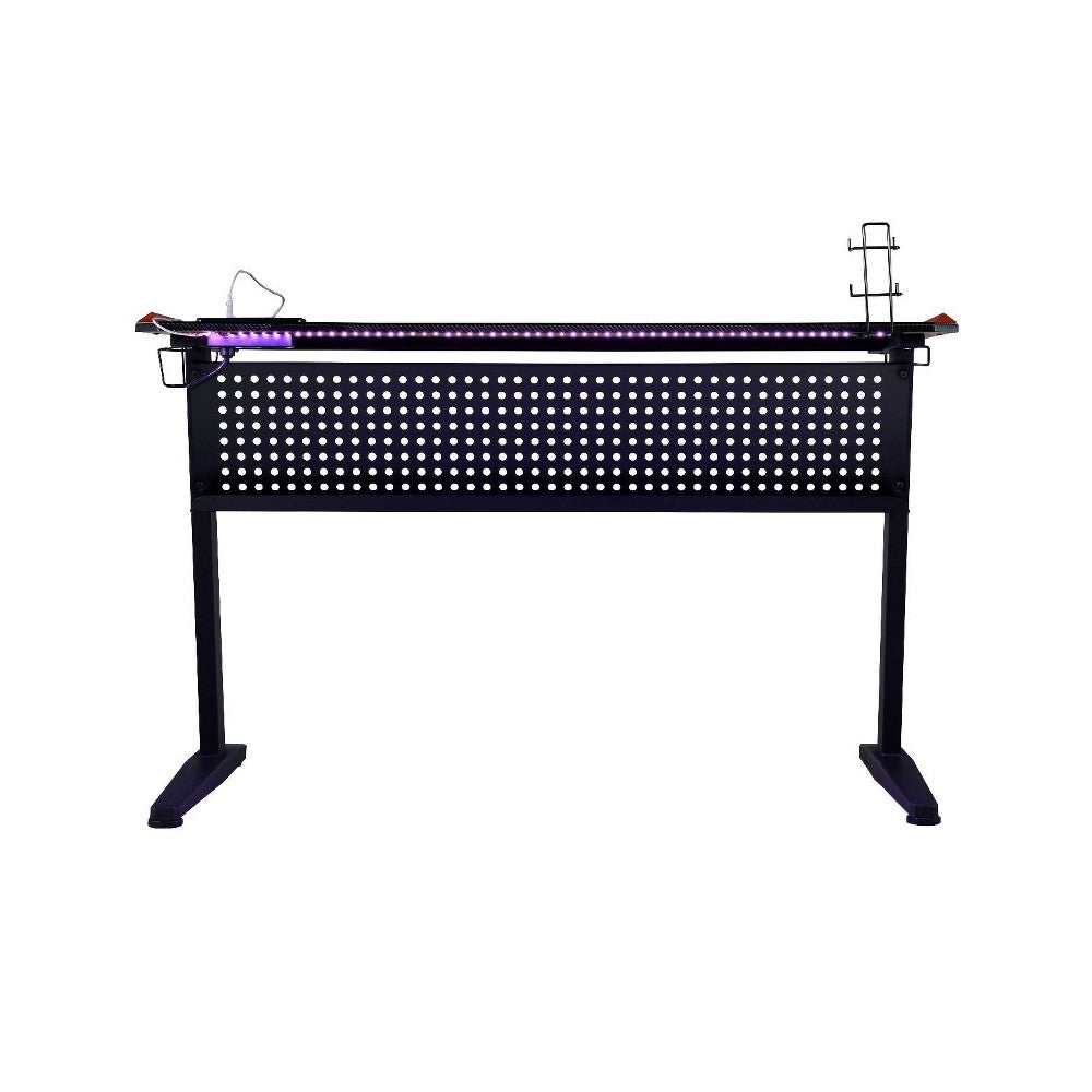 Indulge into Gameworld with the inclusions of this gaming table. It has an 18mm rectangular surface which is plenty enough for your monitors, keyboards, and gaming gears. It comes with LED lighting, a convenient cup holder, controller stand while the metal Z design base provides stability and strength.