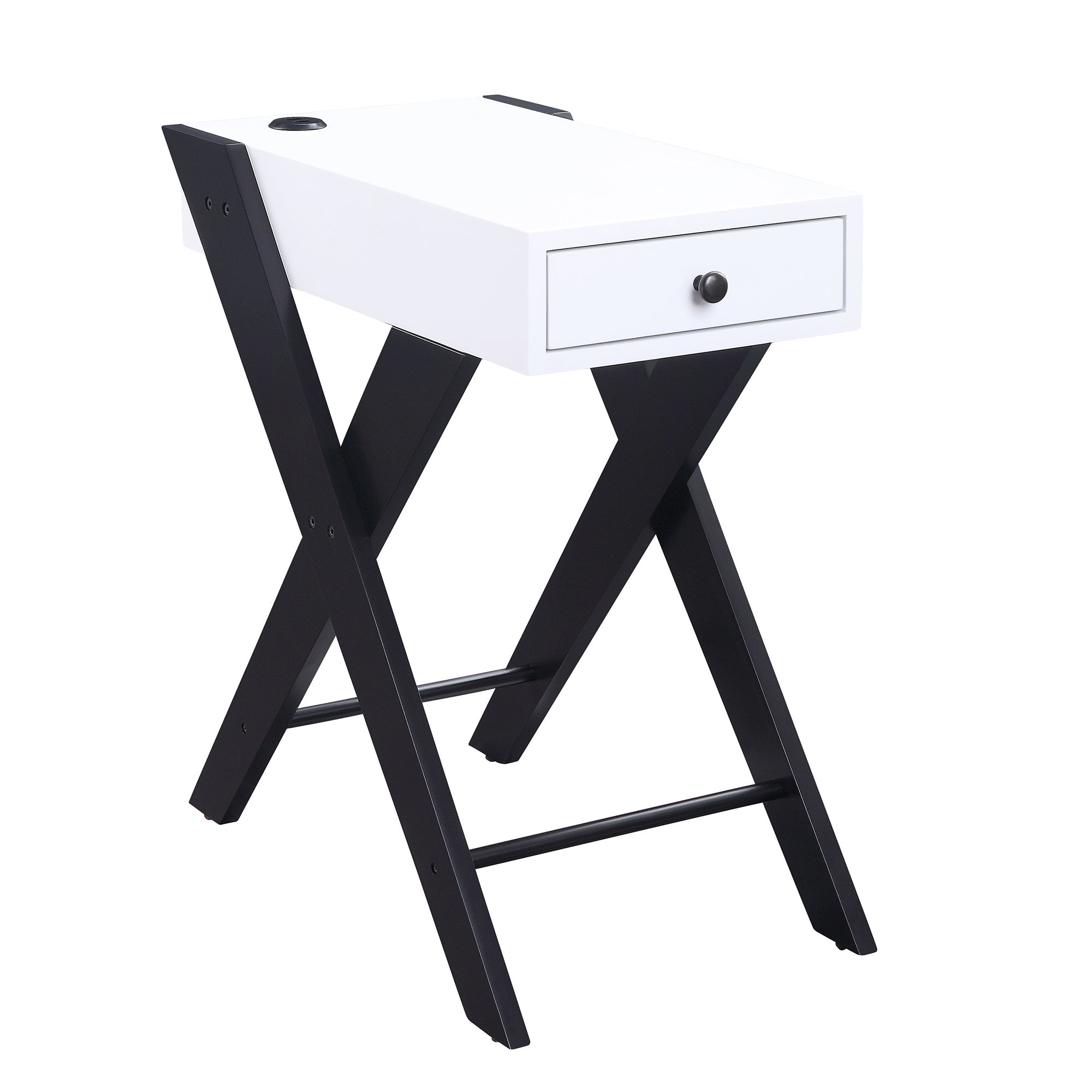 Home > Wooden Frame Side Table with X Shaped Legs and 1 Drawer, White and Black