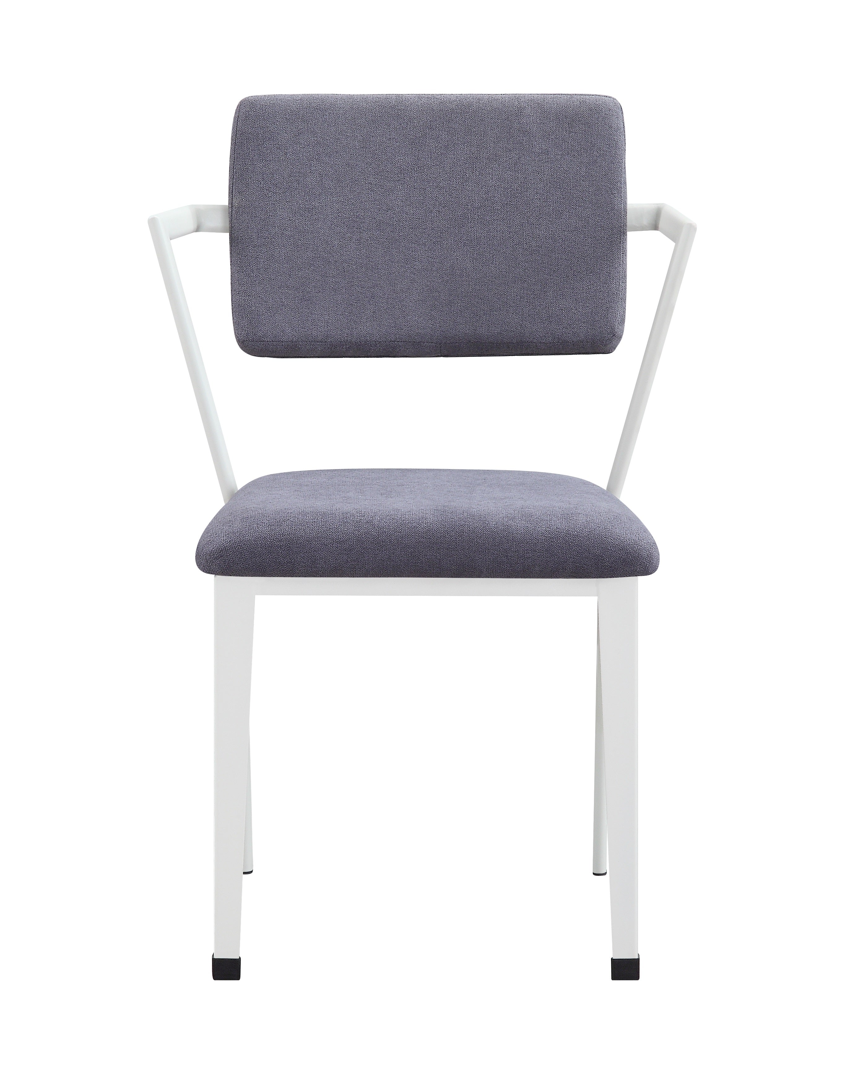 Metal Chair with Fabric Upholstery and Straight Legs, Gray and White