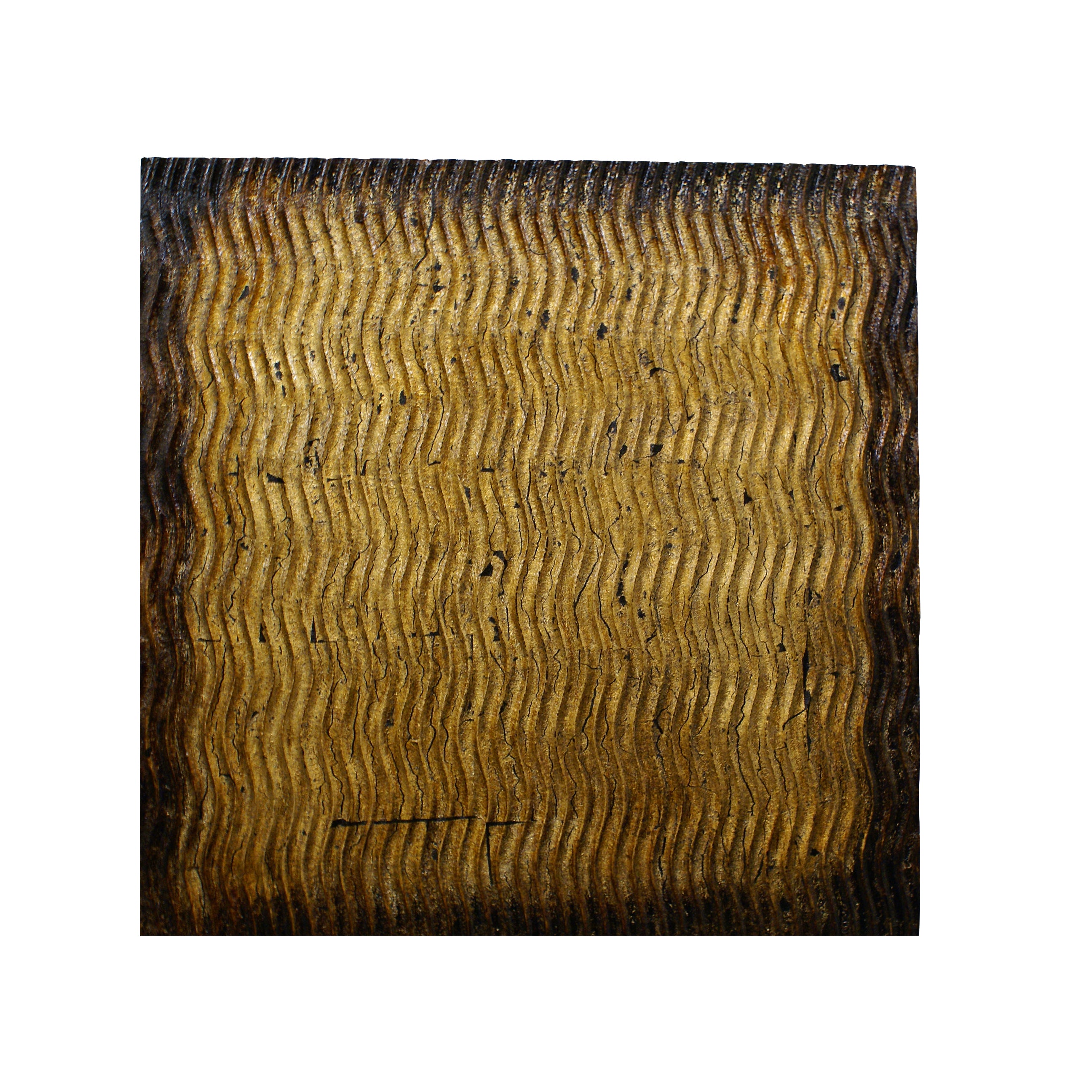 This modern styled wall decor is constructed of patterned wood carvings. This wall piece has a gold colored panel with metallic finish and brown highlights on the sides which gives a very rich appearance to it and suites well with different types of room decor.