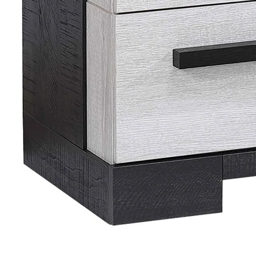 Ruthe Nightstand with 2 Drawers, Wide Top, Ebony Black, White Wood