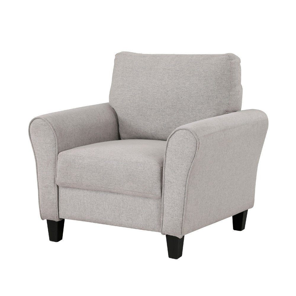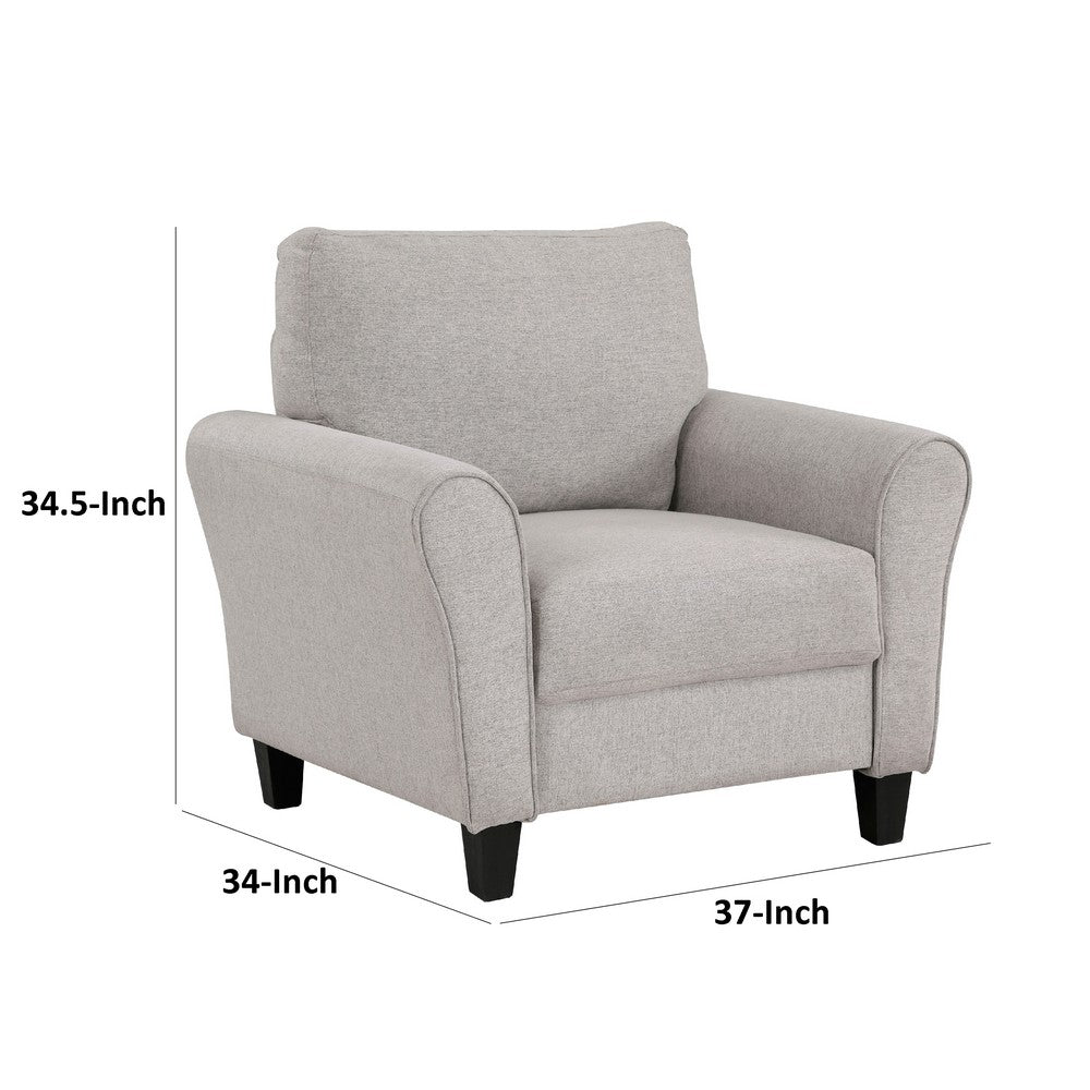 Leroi Accent Chair, 37 Inch, Gray Fabric and Round Flared Armrests