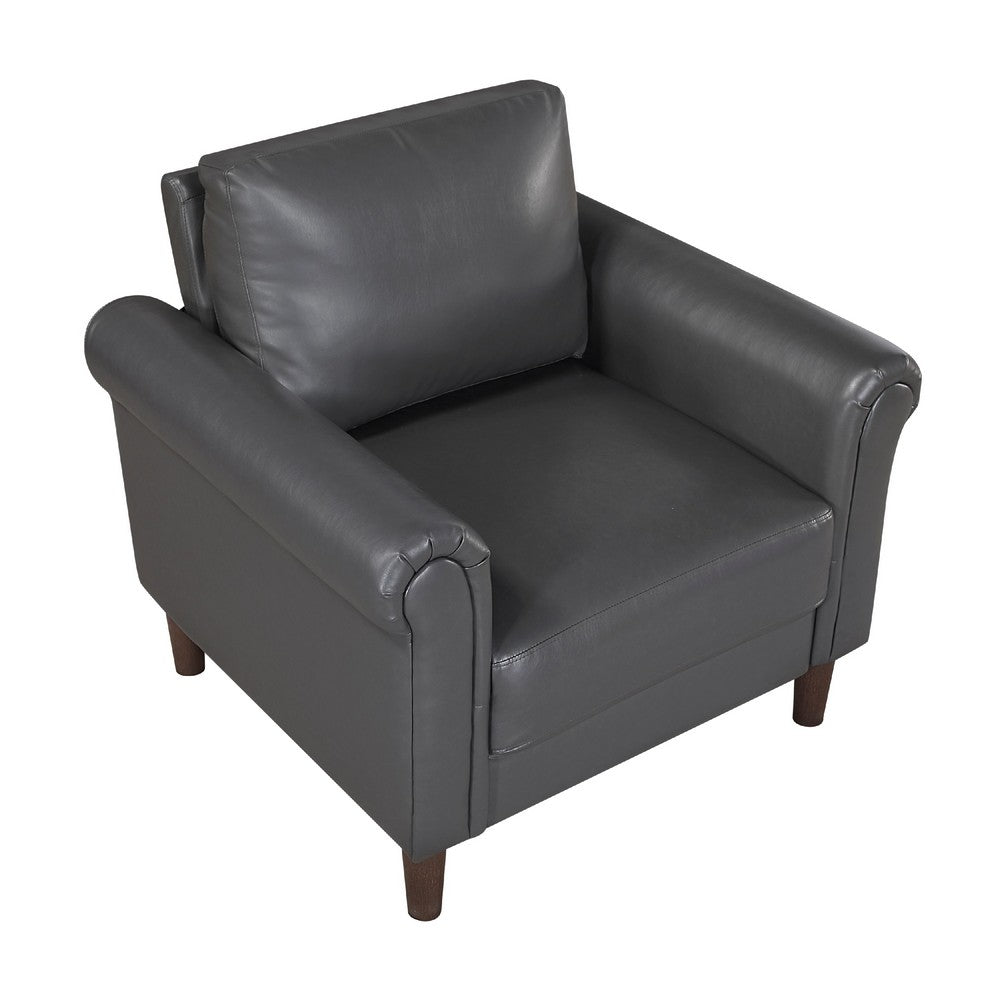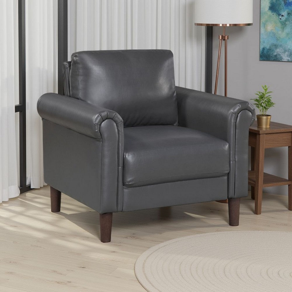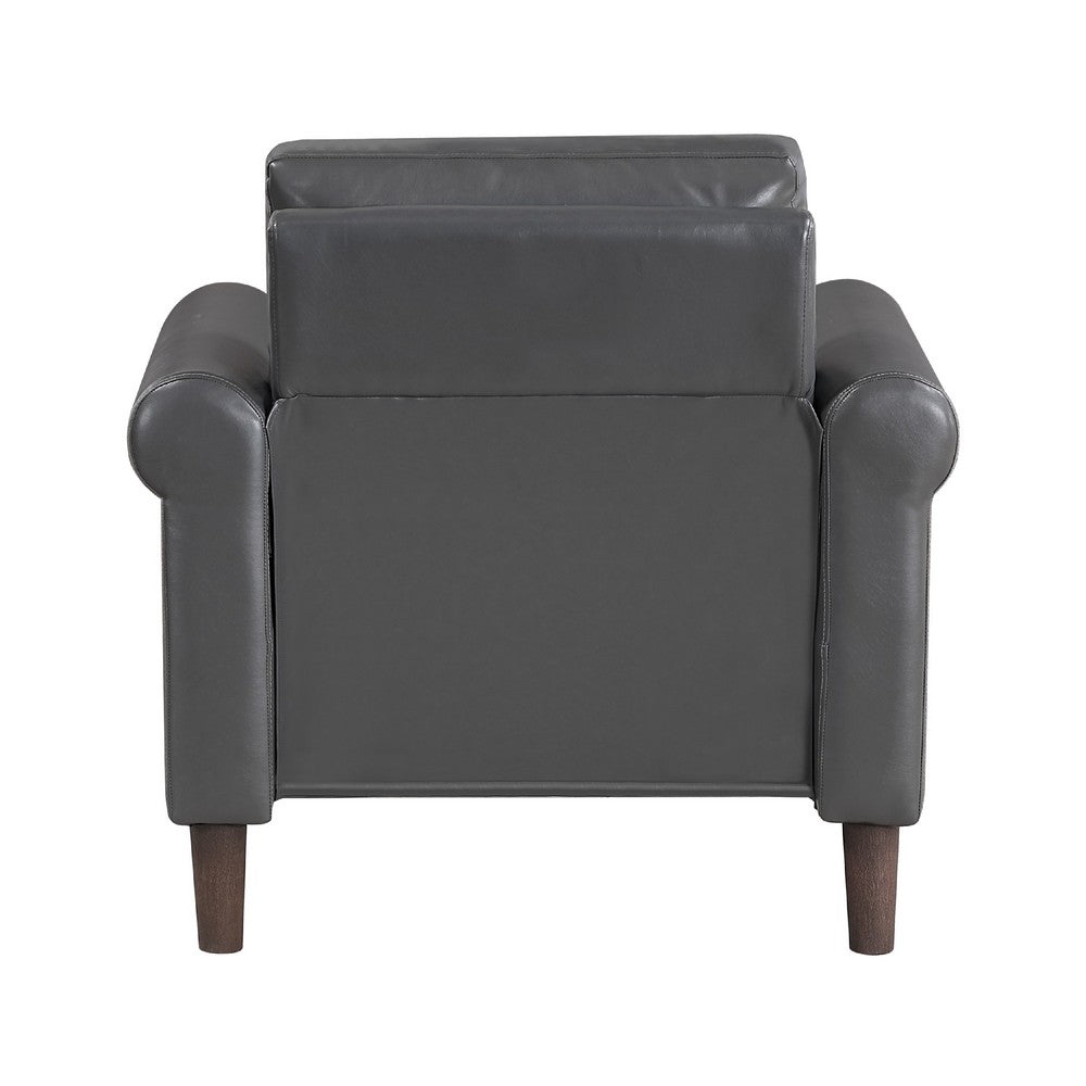 Home > Lo Accent Chair w Rolled Arms, Midcentury Dark Gray Faux Leather