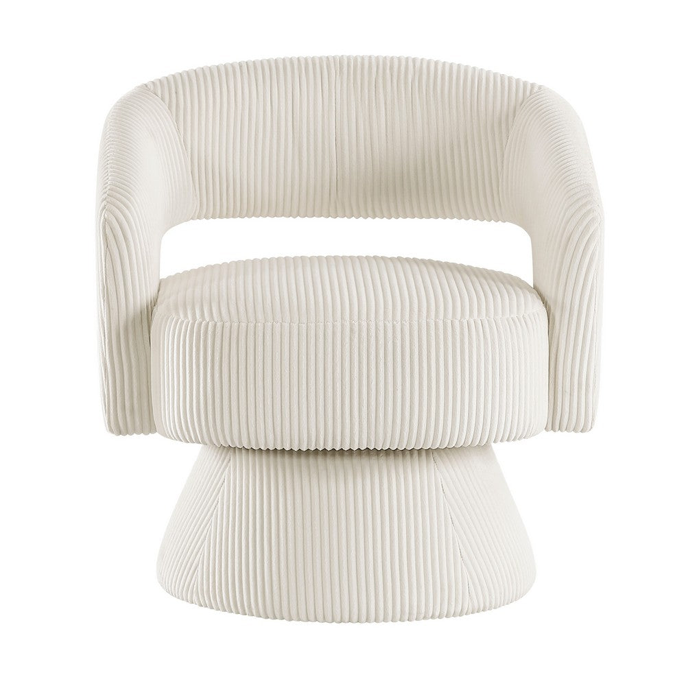 Rayne Swivel Accent Chair, Ivory Corduroy, Round Metal Swivel Base