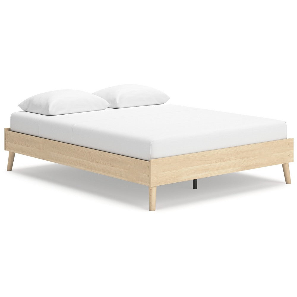 Abis Queen Platform Bed, Natural Brown Wood, Low Profile Tapered Legs