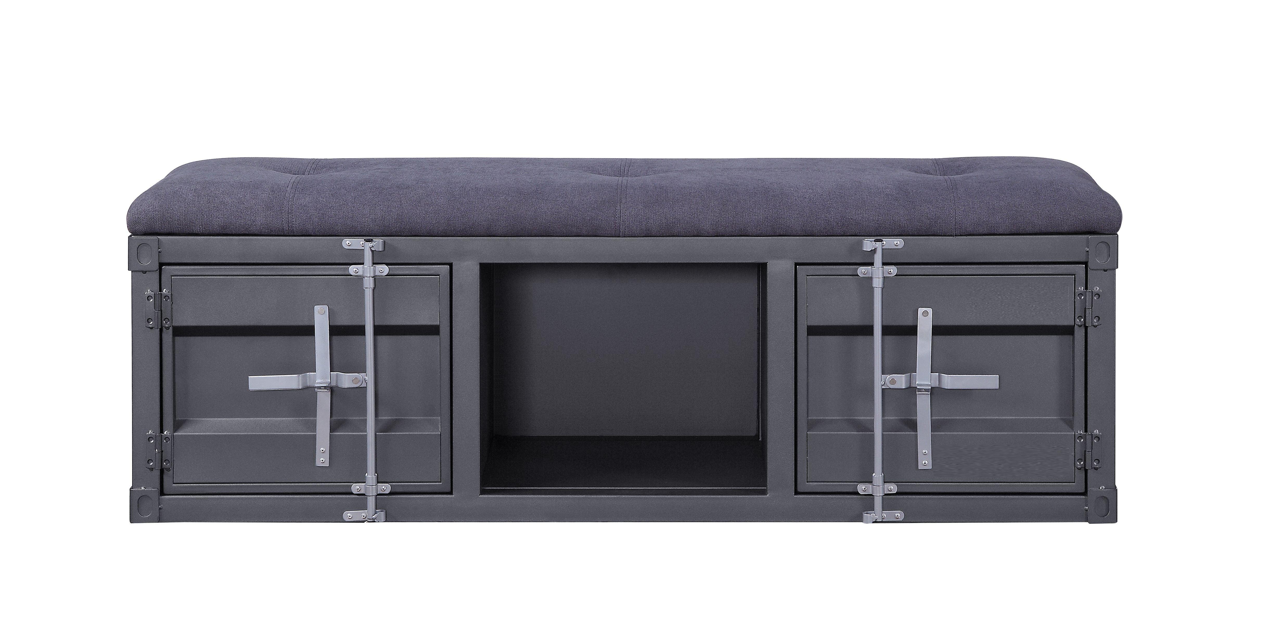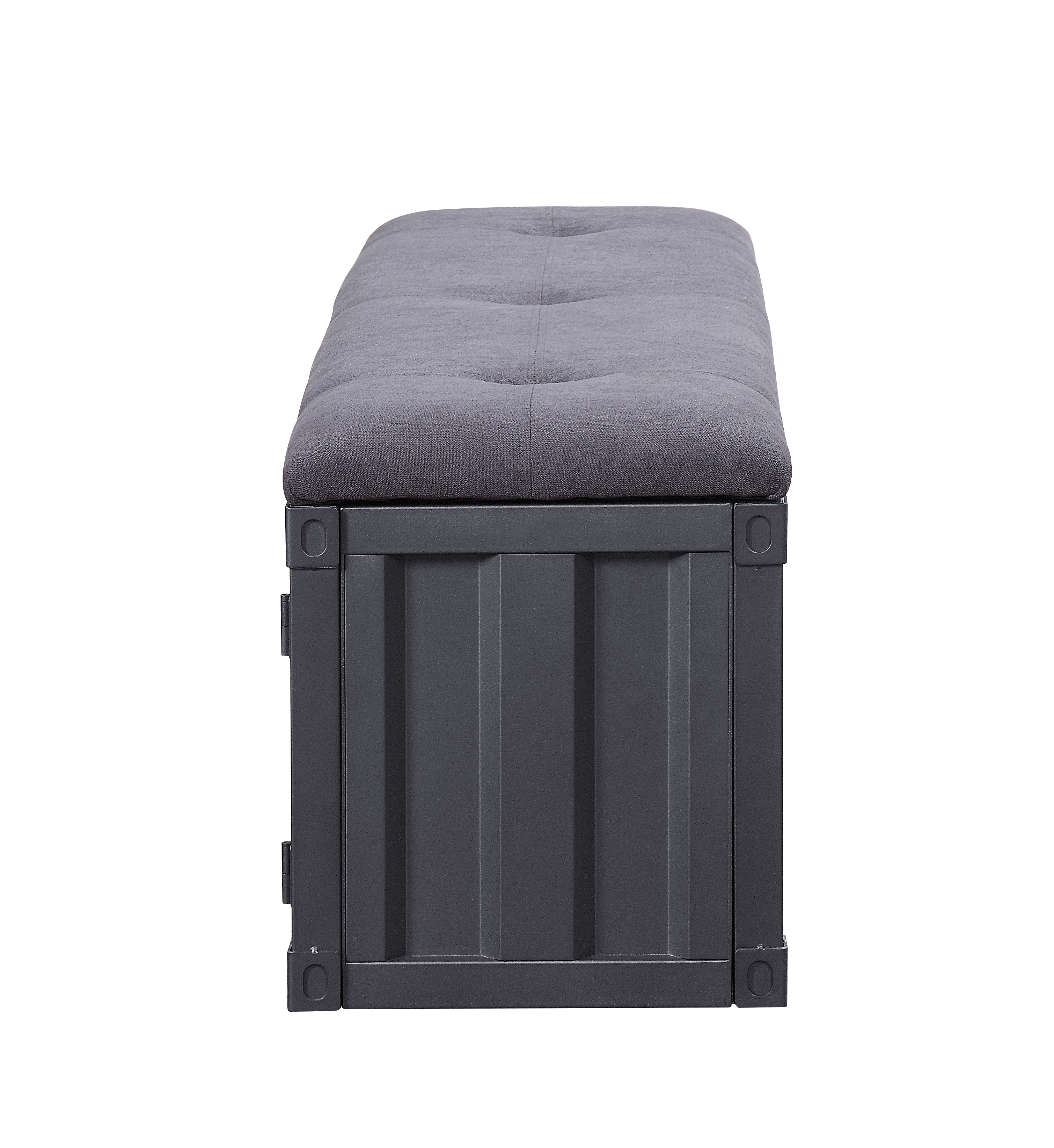 Industrial Style Metal and Fabric Bench with Open Storage, Gray