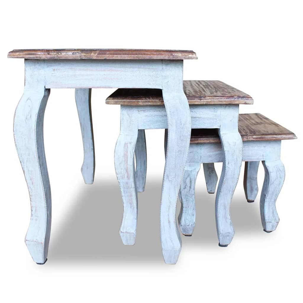 Nesting Table Brown, White Solid Mahogany Wood Small, Medium, Large