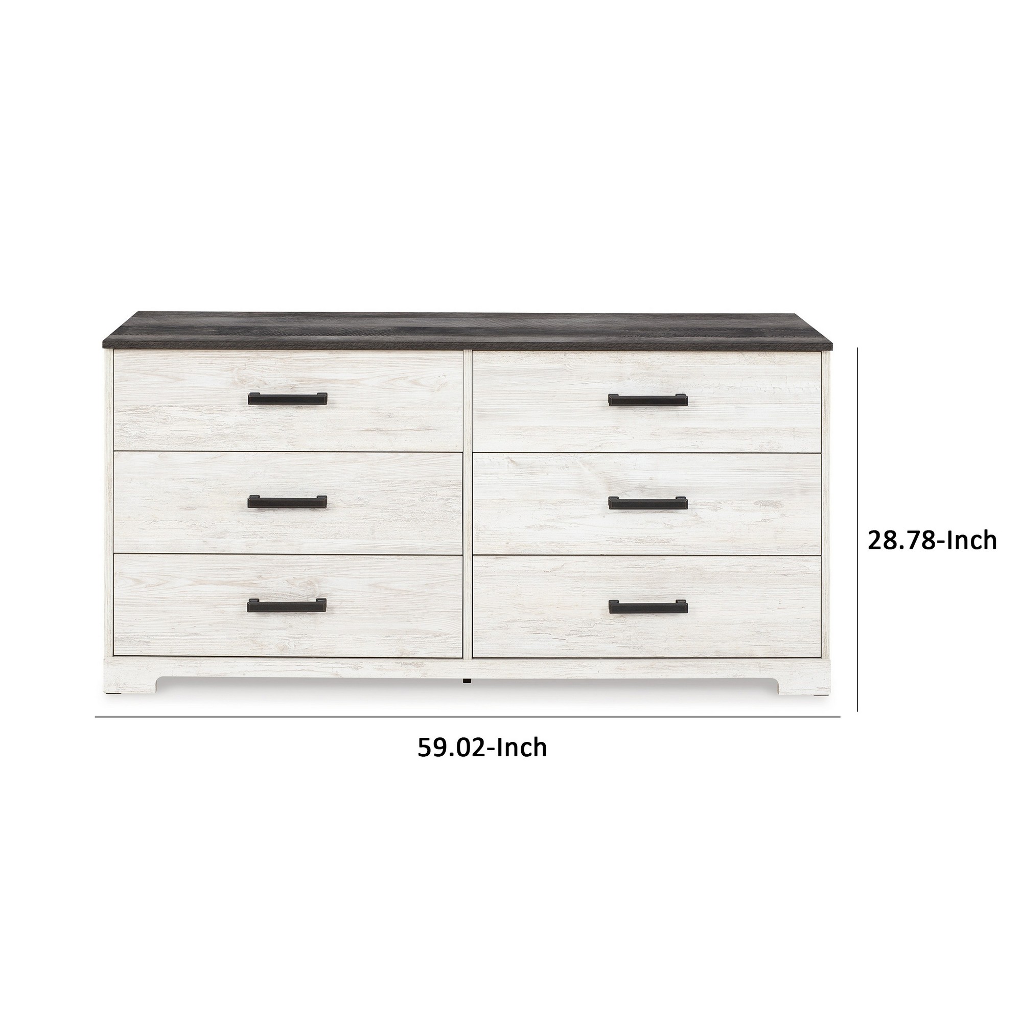 Wisp 59 Inch Wood Dresser, 6 Gliding Drawers, Rustic Crisp White Finish