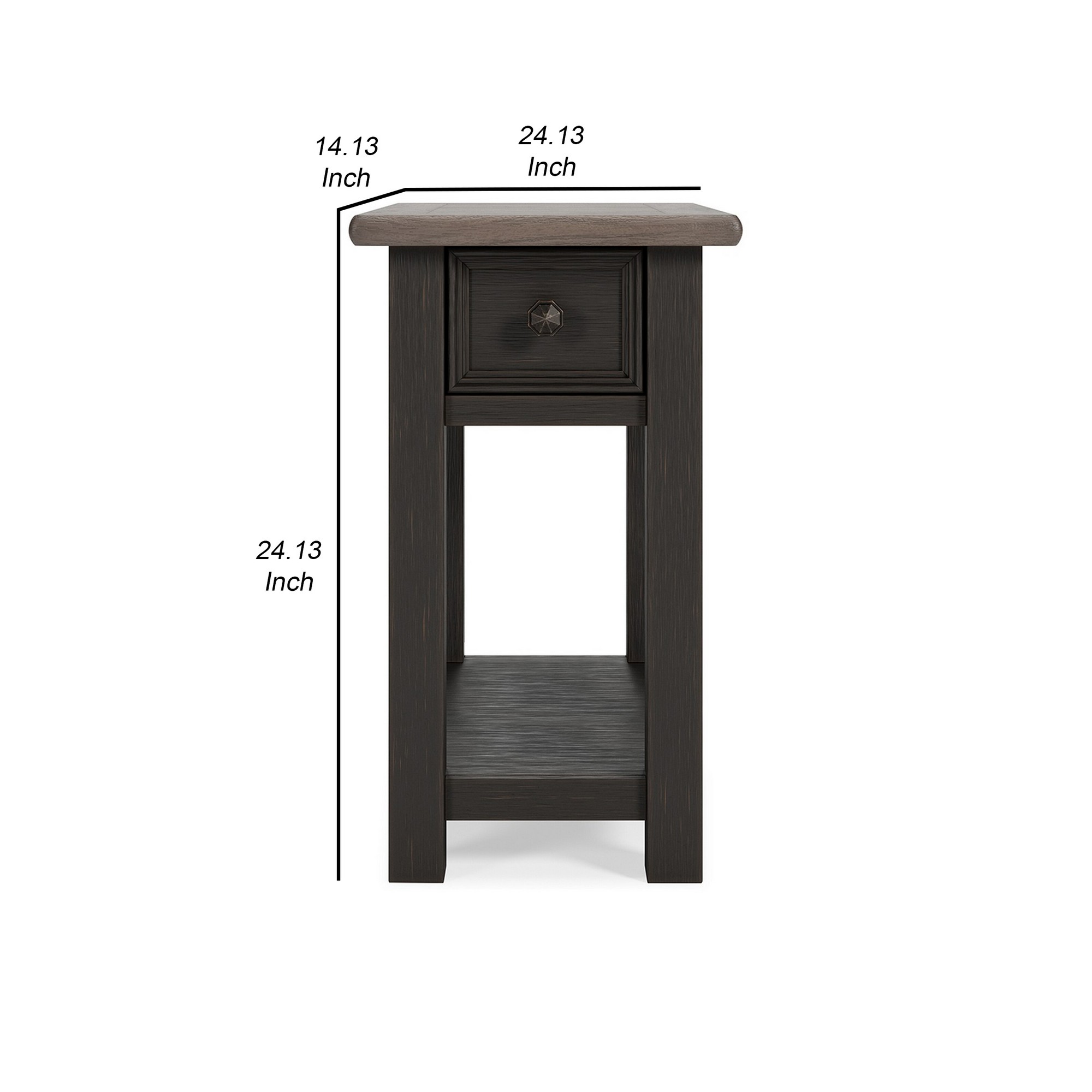 Home > 24 Inch Side End Table, Black Wood Base, Power Socket and USB Chargers