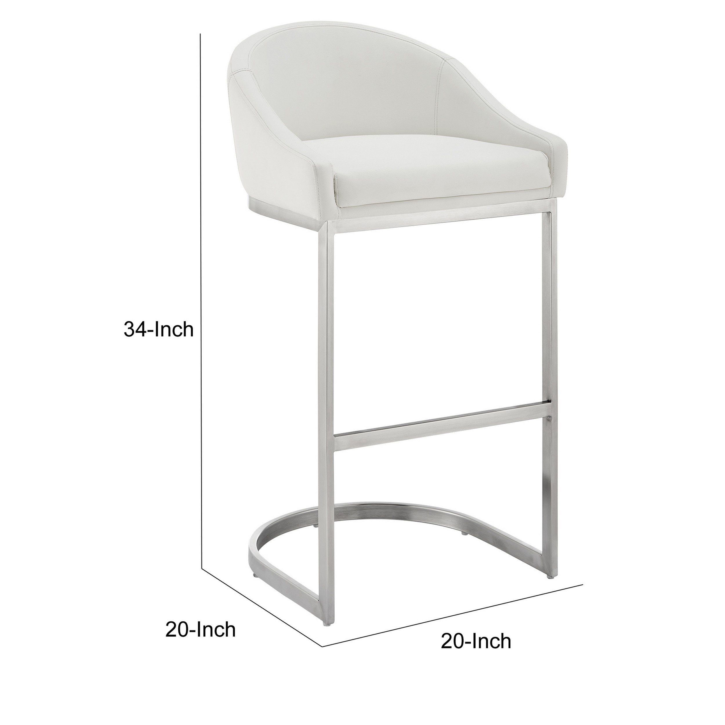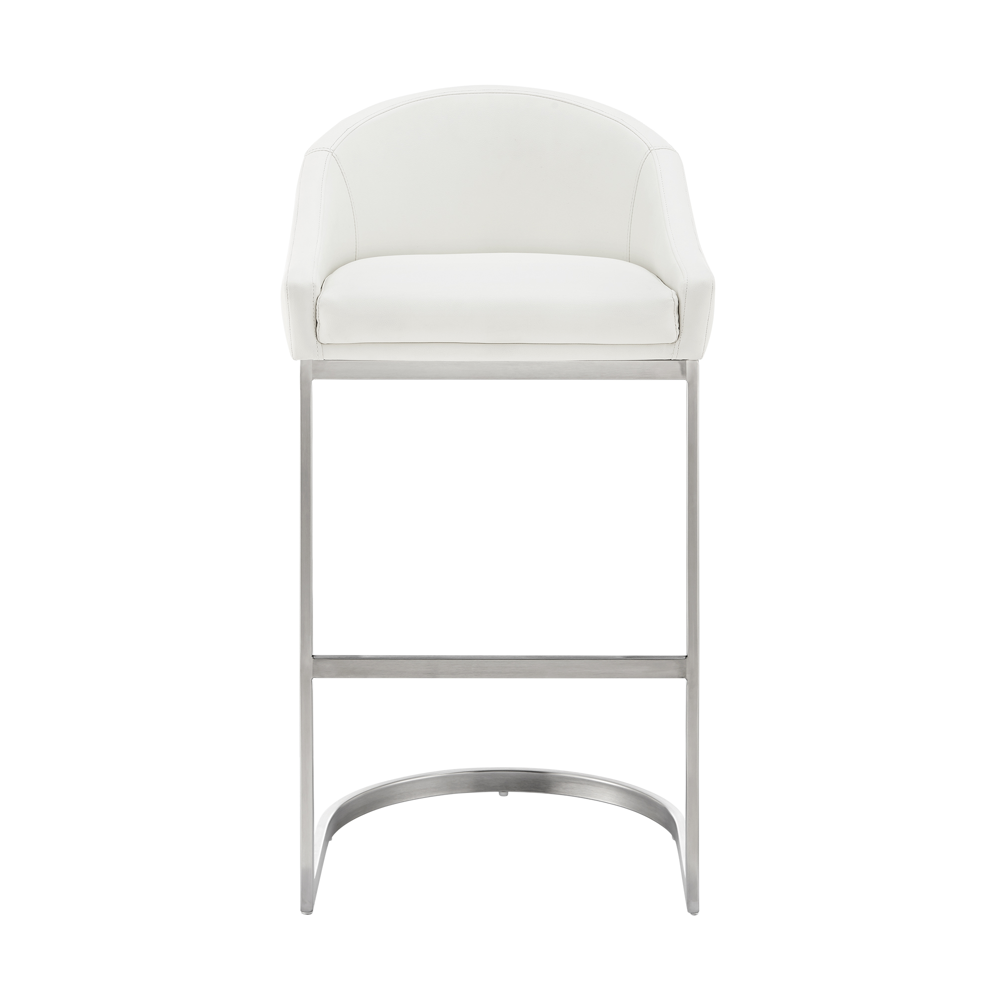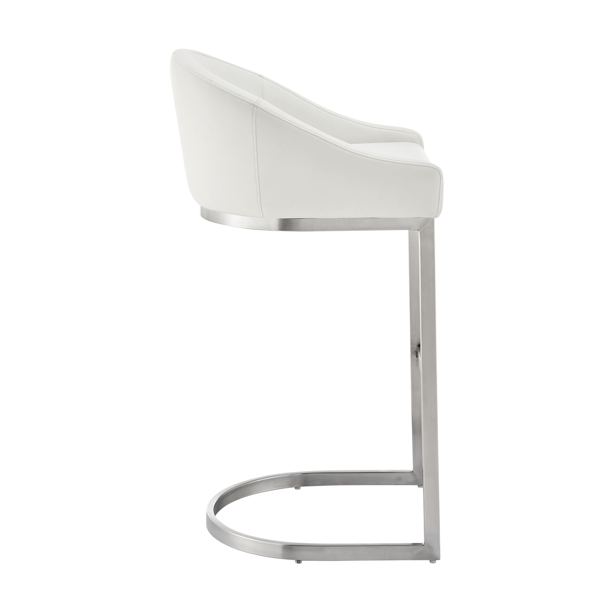 Elegantly update your kitchen countertop or counter height dining table with our sleek modern counter stool chair. It has an stylish barrel back and a thickly padded seat cushion, all wrapped in soft white faux leather upholstery for added comfort. Its sleek L shaped cantilever base illustrates an unmatched decorative artistic style. Check out our Lina collection for more color and size options