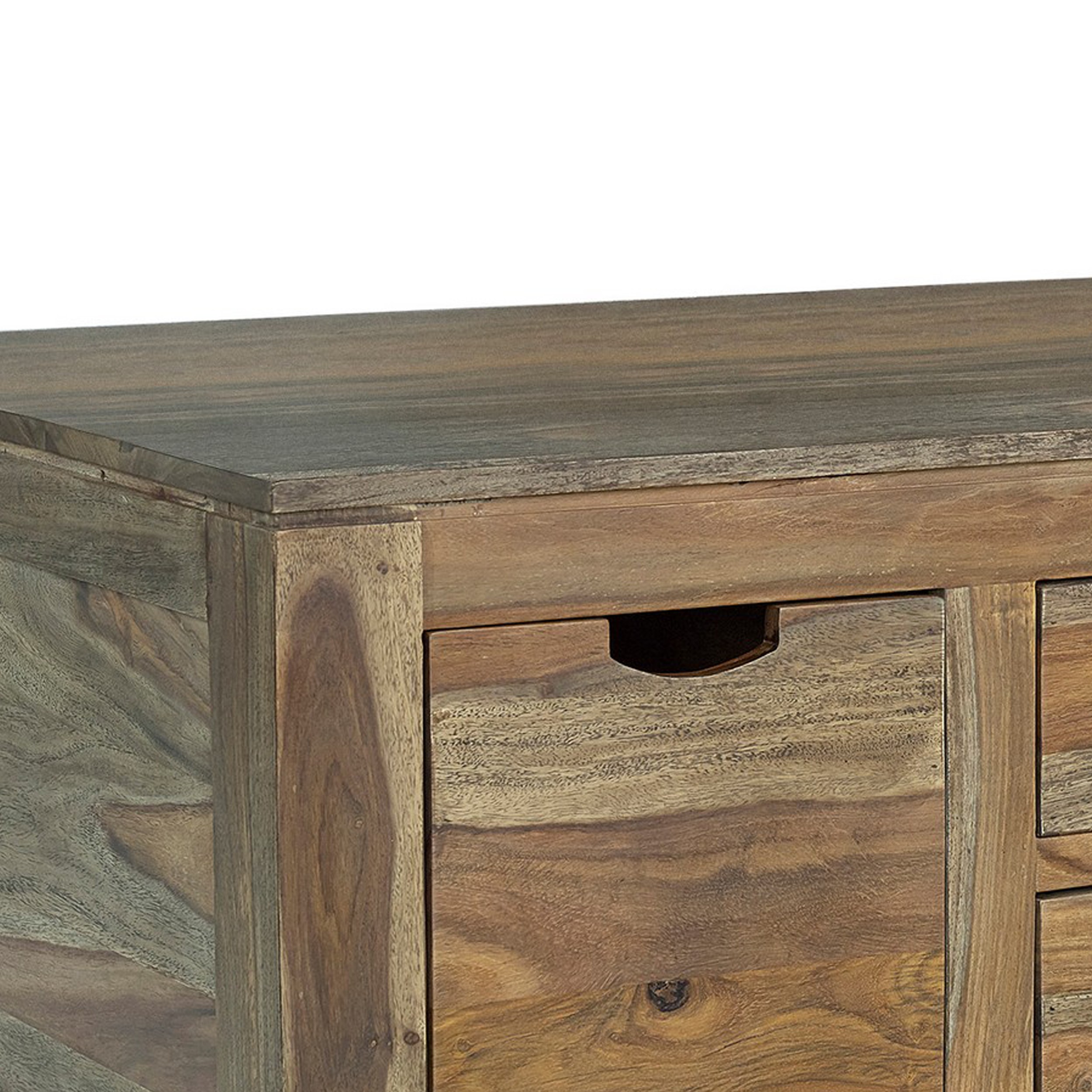Enhance the rustic look of your home and give your modern living space an accent of rugged, homespun warmth and storage with this beautifully made coffee table. Made from sturdy sheesham wood in a rich brown finish, it boasts visually striking wood grain details, six gliding drawers, and a spacious top that is perfect for displaying decorations and keeping remotes and coffee table literature.