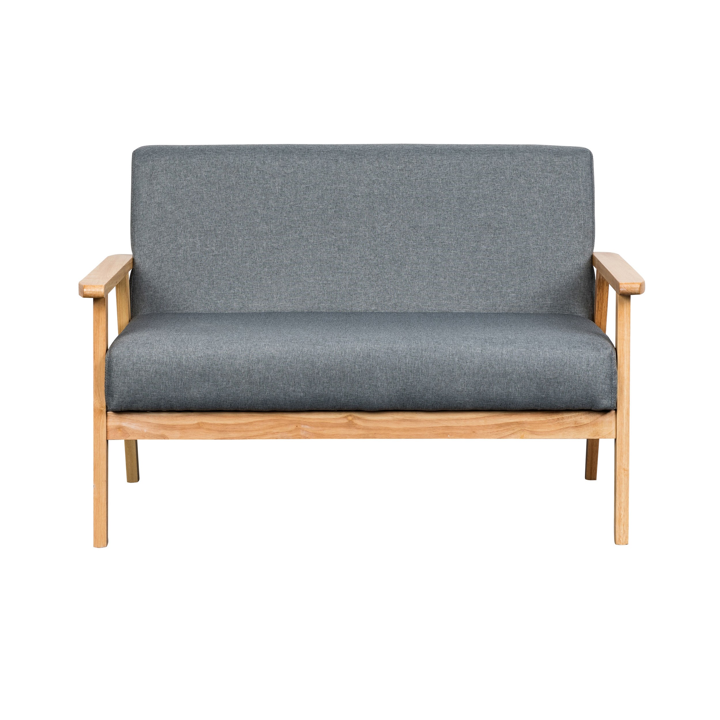Sink into this charming and plush modern loveseat at the end of a long day to truly experience the comfort and enduring style of contemporary interior decor. As reliable as it is beautiful, this piece is constructed with a solid natural brown wood frame, plush smooth gray seats, and a distinct and meticulously designed aesthetic appeal. Check out our Gala collection for matching items.