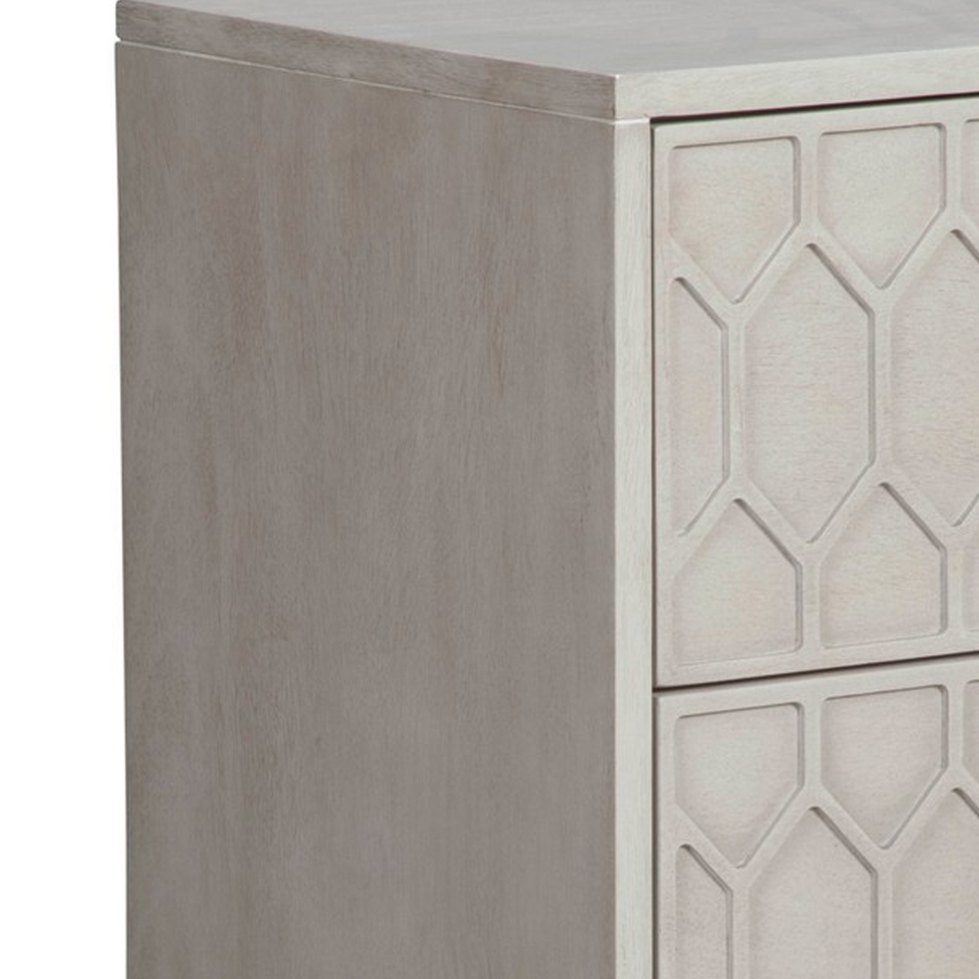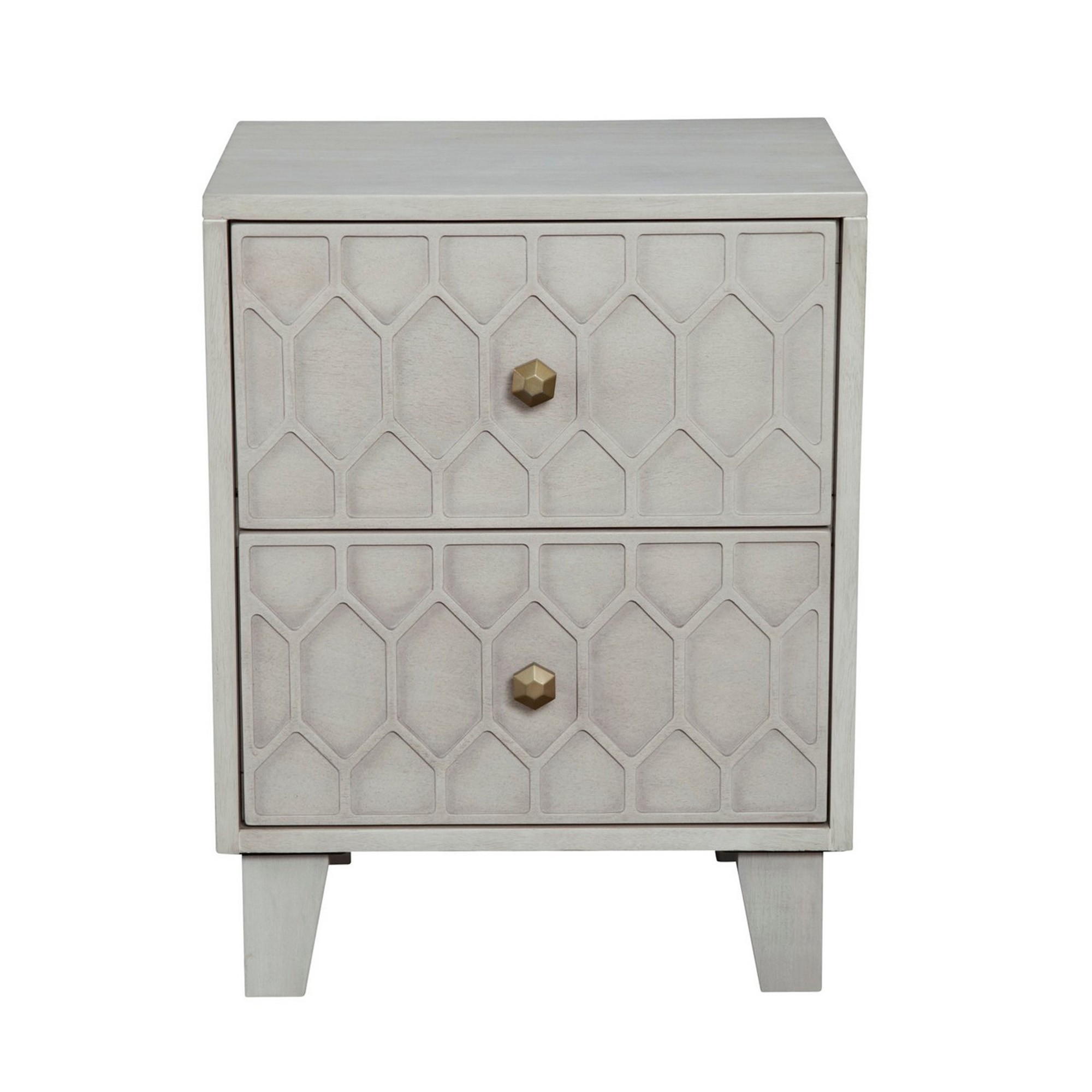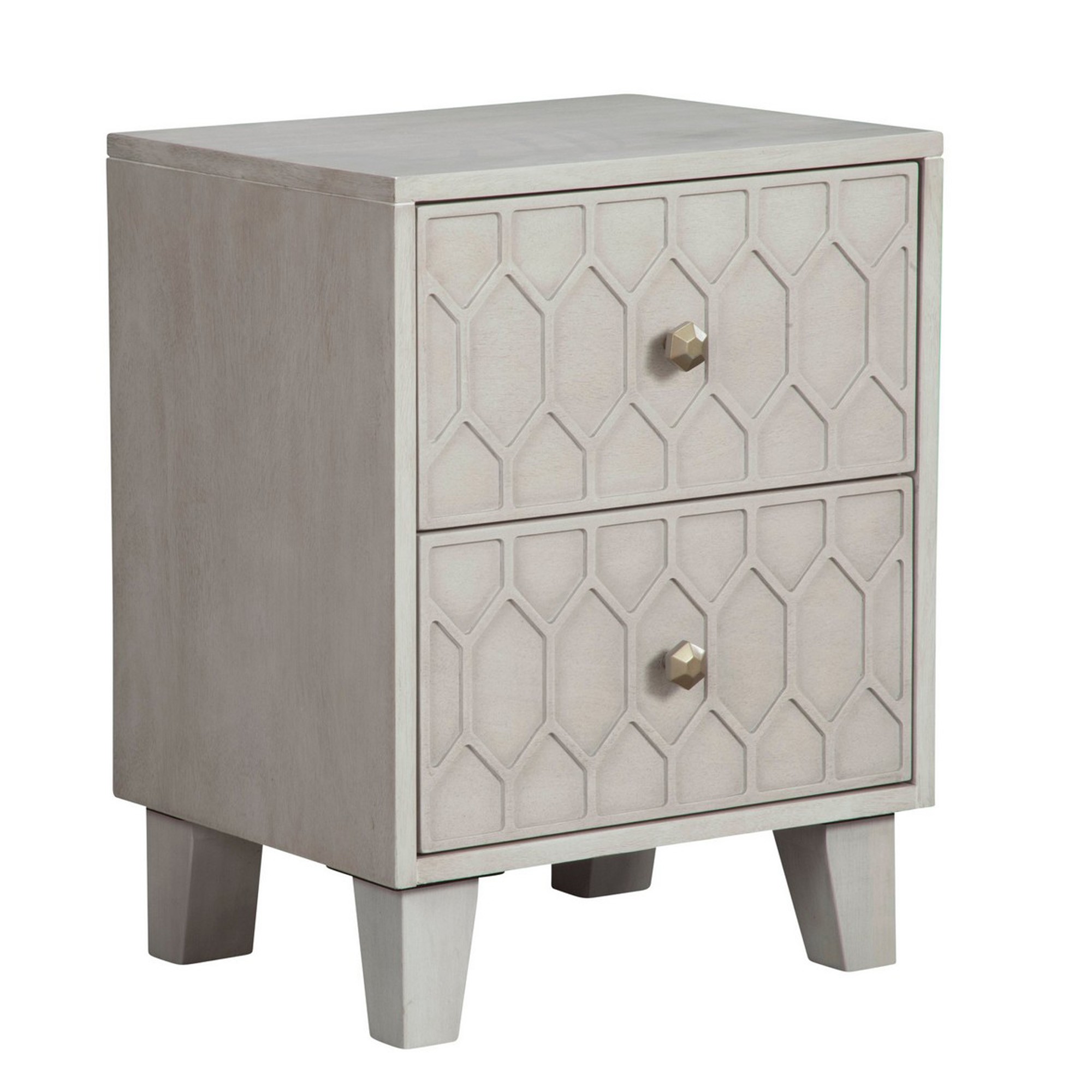 Home > Rue 26 Inch 2 Drawer Nightstand, Textured Honeycomb Design, Light Gray