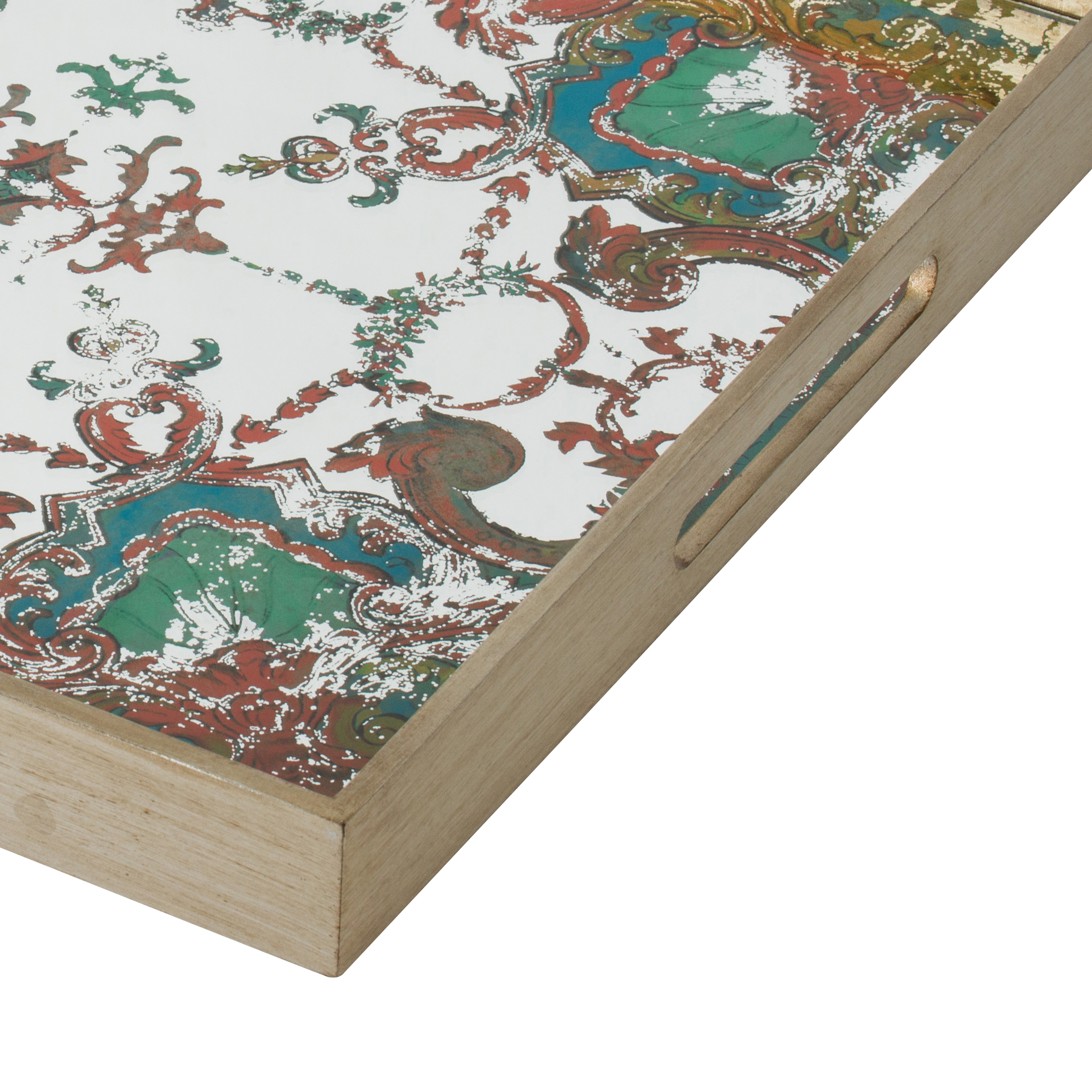 Perfect for showing off your beloved decorations or precious memories in open sight with a beautifully mirrored flourish, this gorgeous tray is adorned with a striking damask pattern. It is made to both accent your home aesthetic and give your decorations a proper stage on which to delight guests and accentuate your home decor. Check out our Miki collection for matching items.
