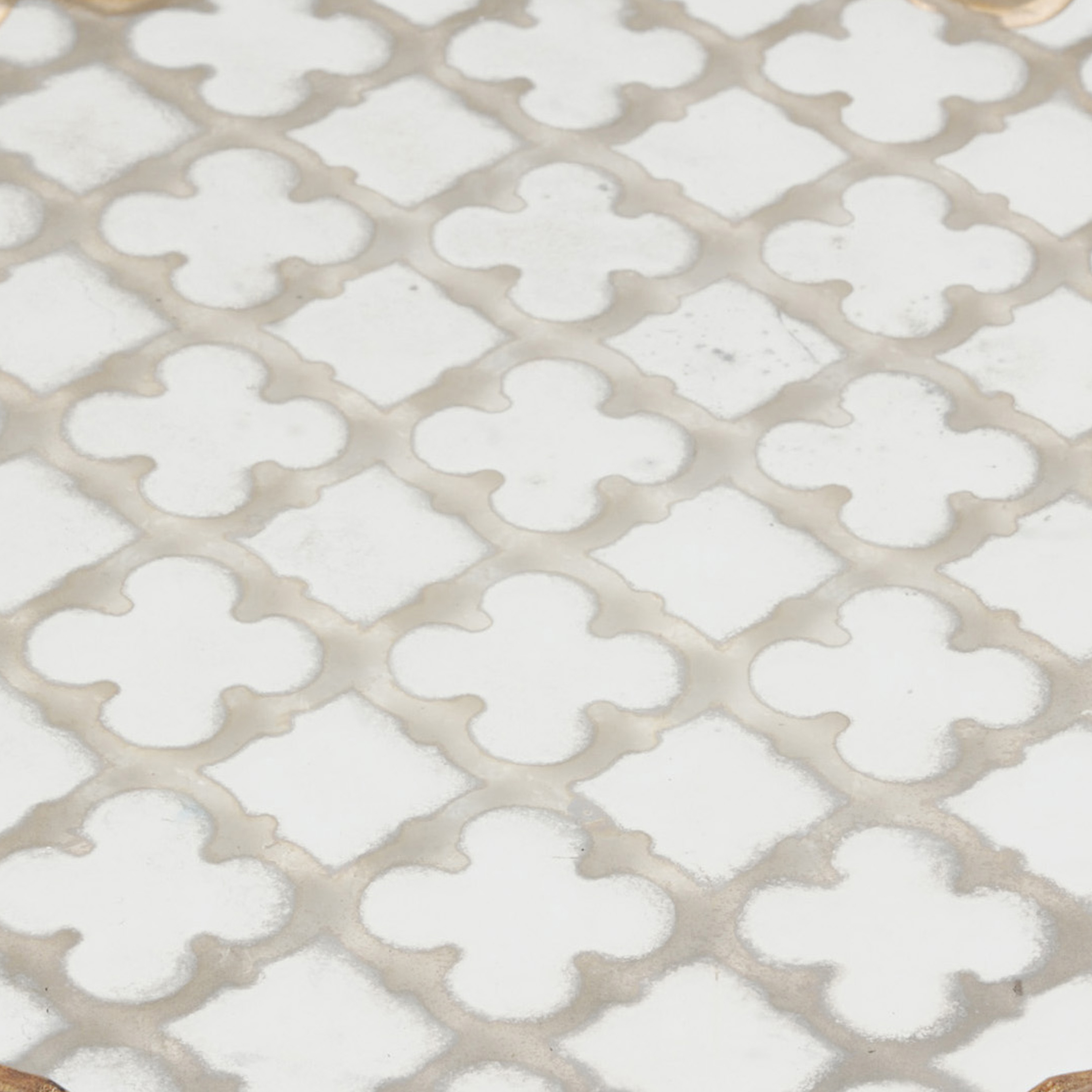 Made with wear and tear resistant iron and crafted with a meticulously designed glass bottom, this gorgeous tray is more than a simple way to express your individuality and display your collections or cherished memories, it is an elegant and artisinally made stage for your favorite decorations to display themselves and make their home on.