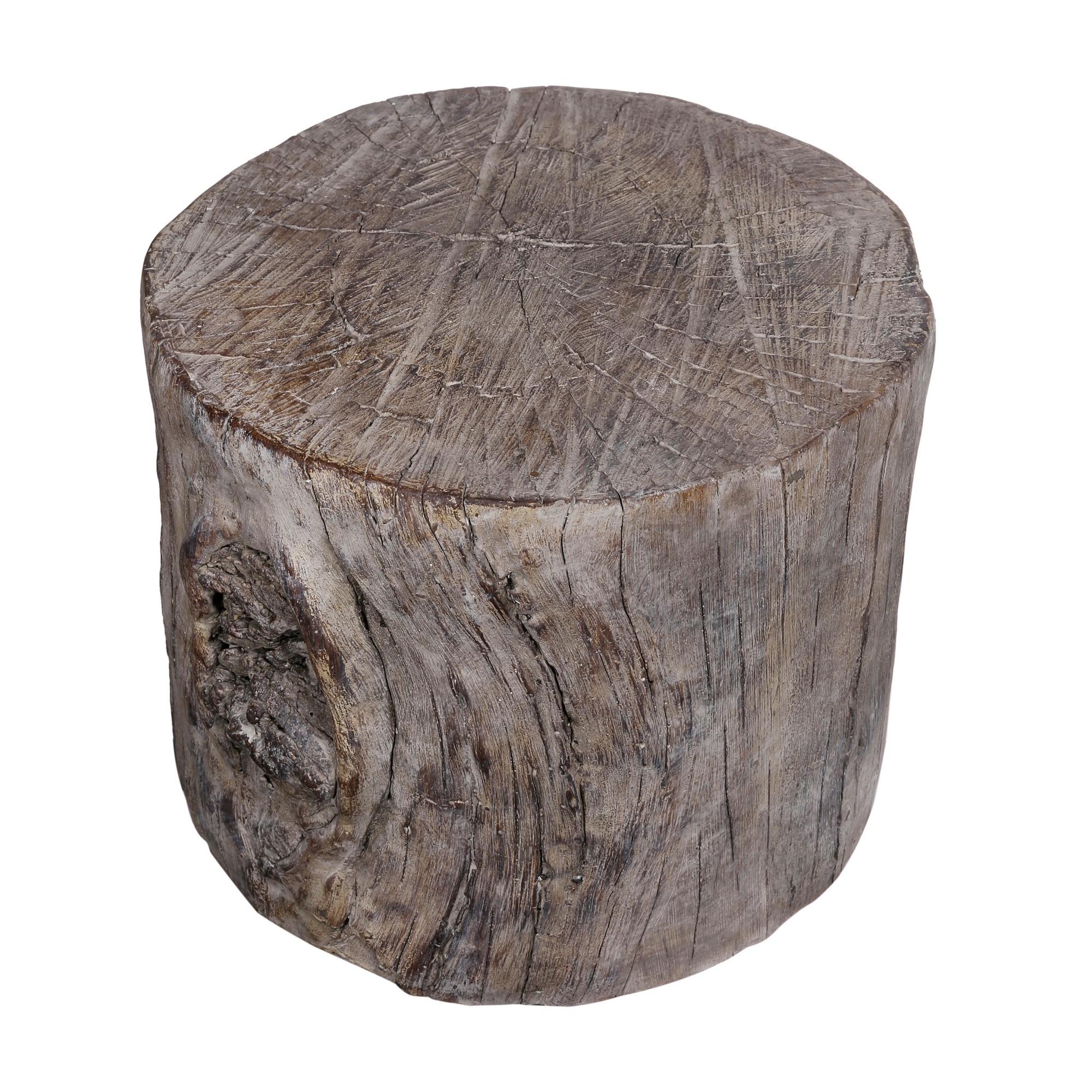 9 Inch Cement Stool Table, Tree Stump Design, Round Top, Classic Brown