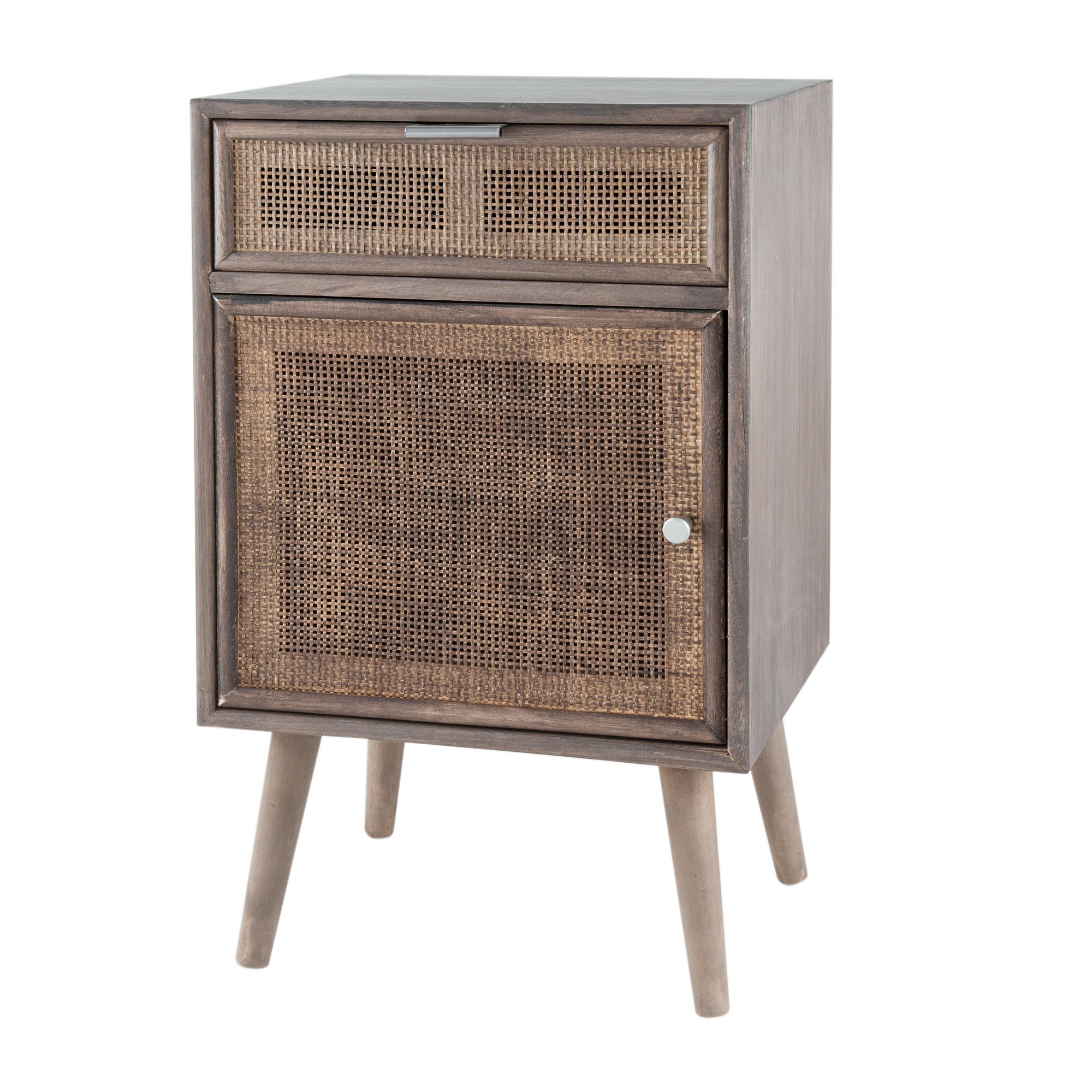 Pia 28 Inch Accent Cabinet, 1 Drawer, Pine Wood, Woven Rattan Door, Brown