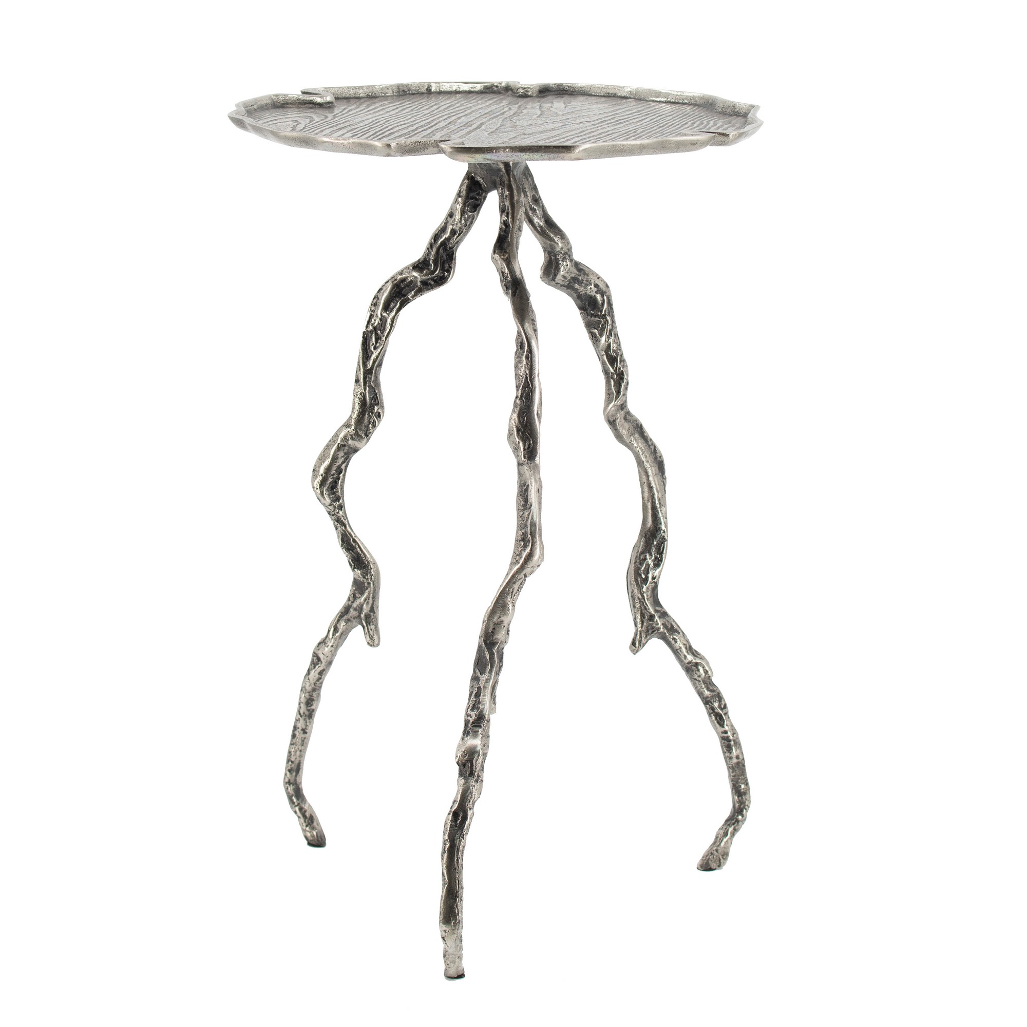 24 Inch Accent Table, Aluminum Metal Branch Tripod Legs, Antique Silver