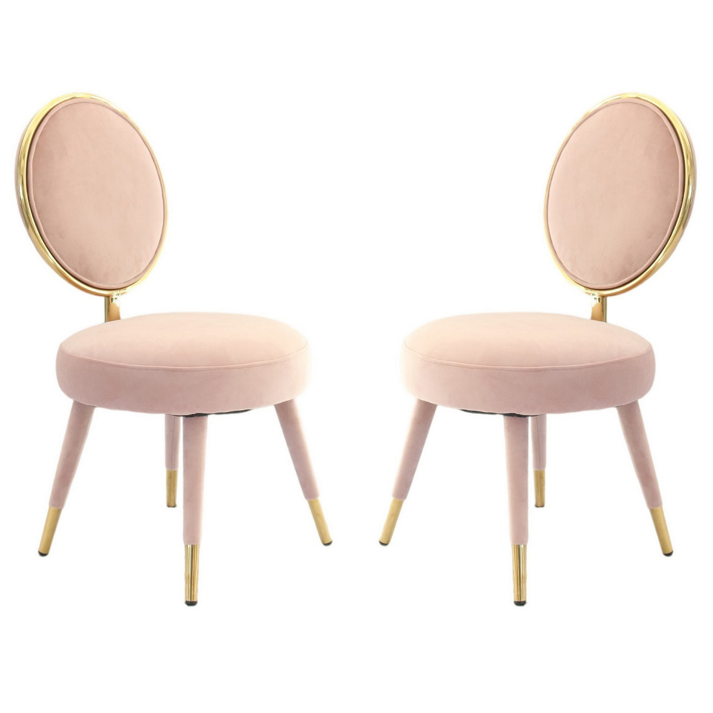 Cid 21 Inch Modern Glam Accent Chair, Round Backrest, Set of 2, Pink Velvet