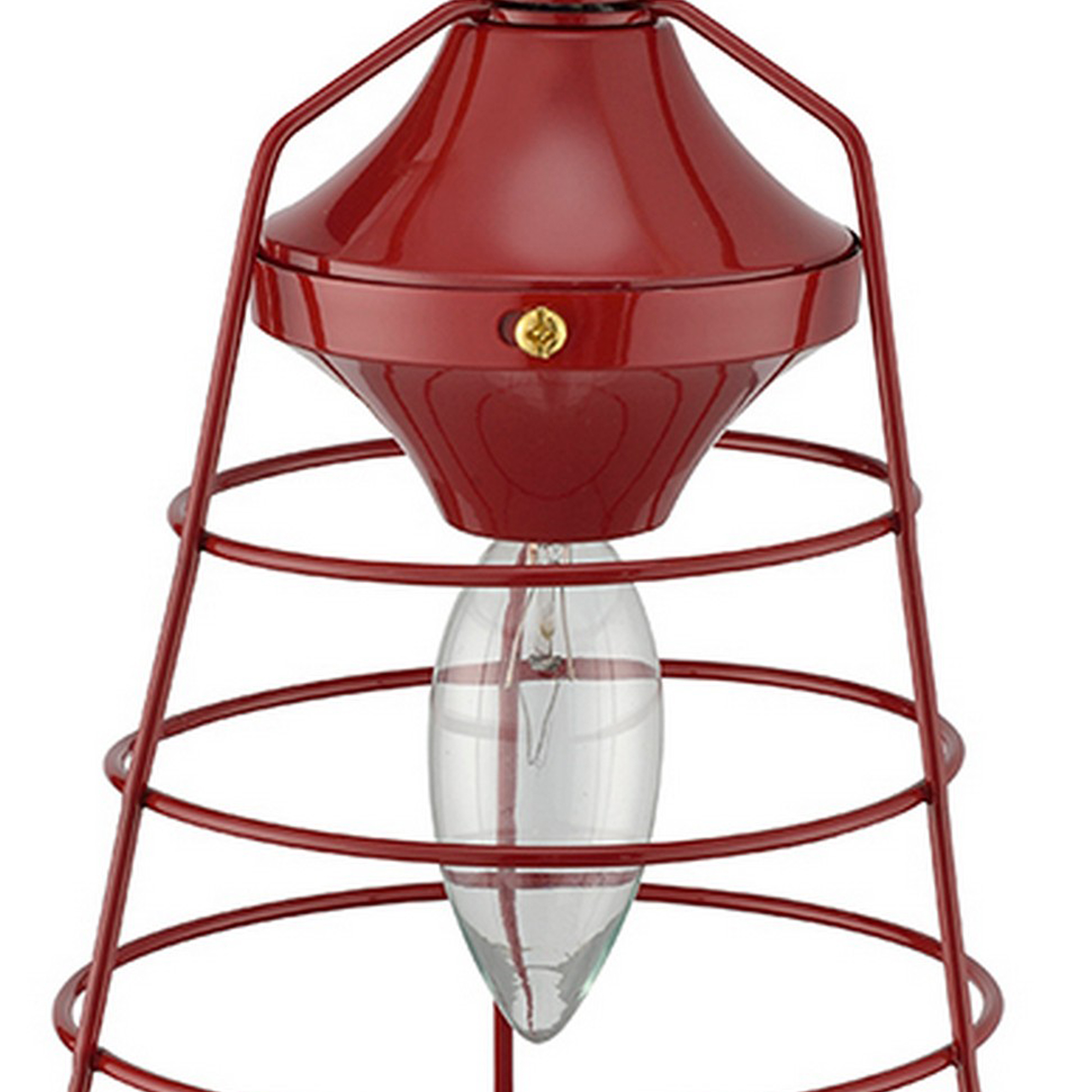 Lantern Table Lamp with Open Metal Frame, Red