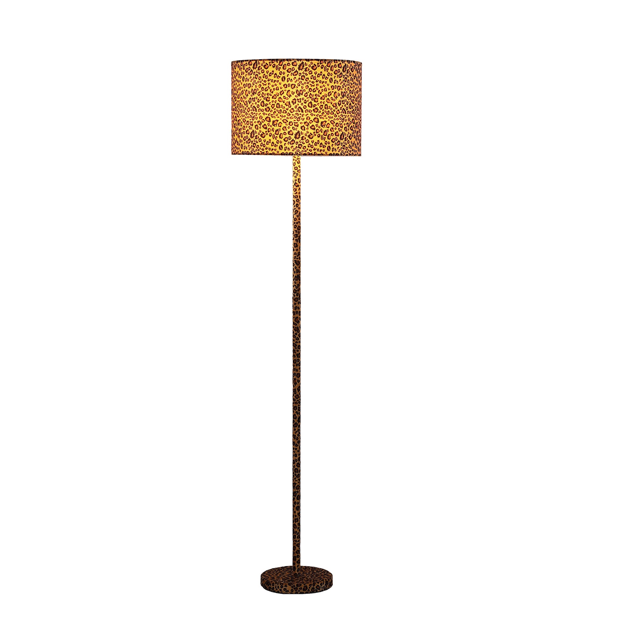 Home > Fabric Wrapped Floor Lamp with Dotted Animal Print, Brown and Black