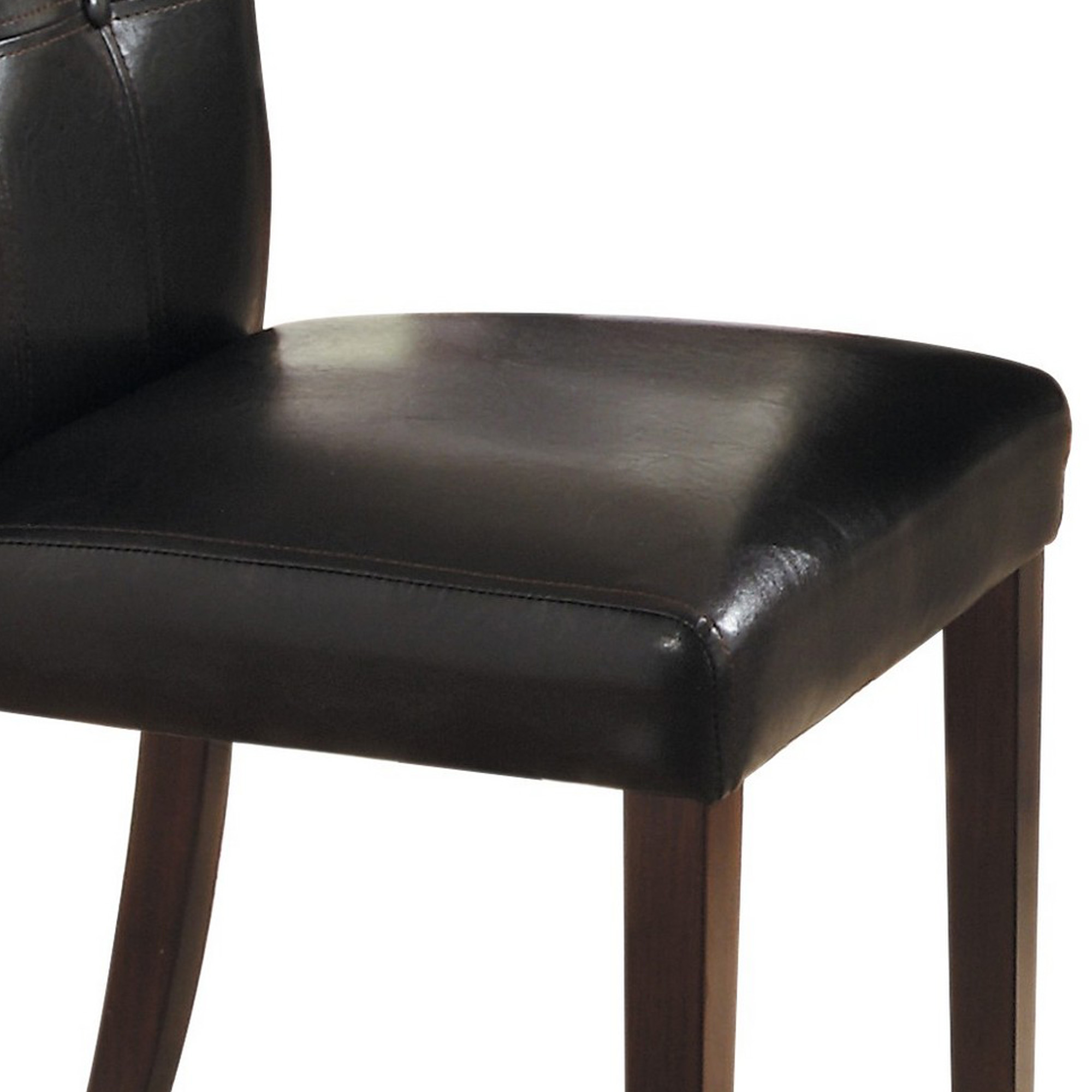 Add a casual seating to your dining space by bringing in this transitional style Side Chair, available in set of 2 which offers a padded seat and comes with button tufted backrest. Constructed from solid wood frame, it is upholstered with espresso brown color faux leather.