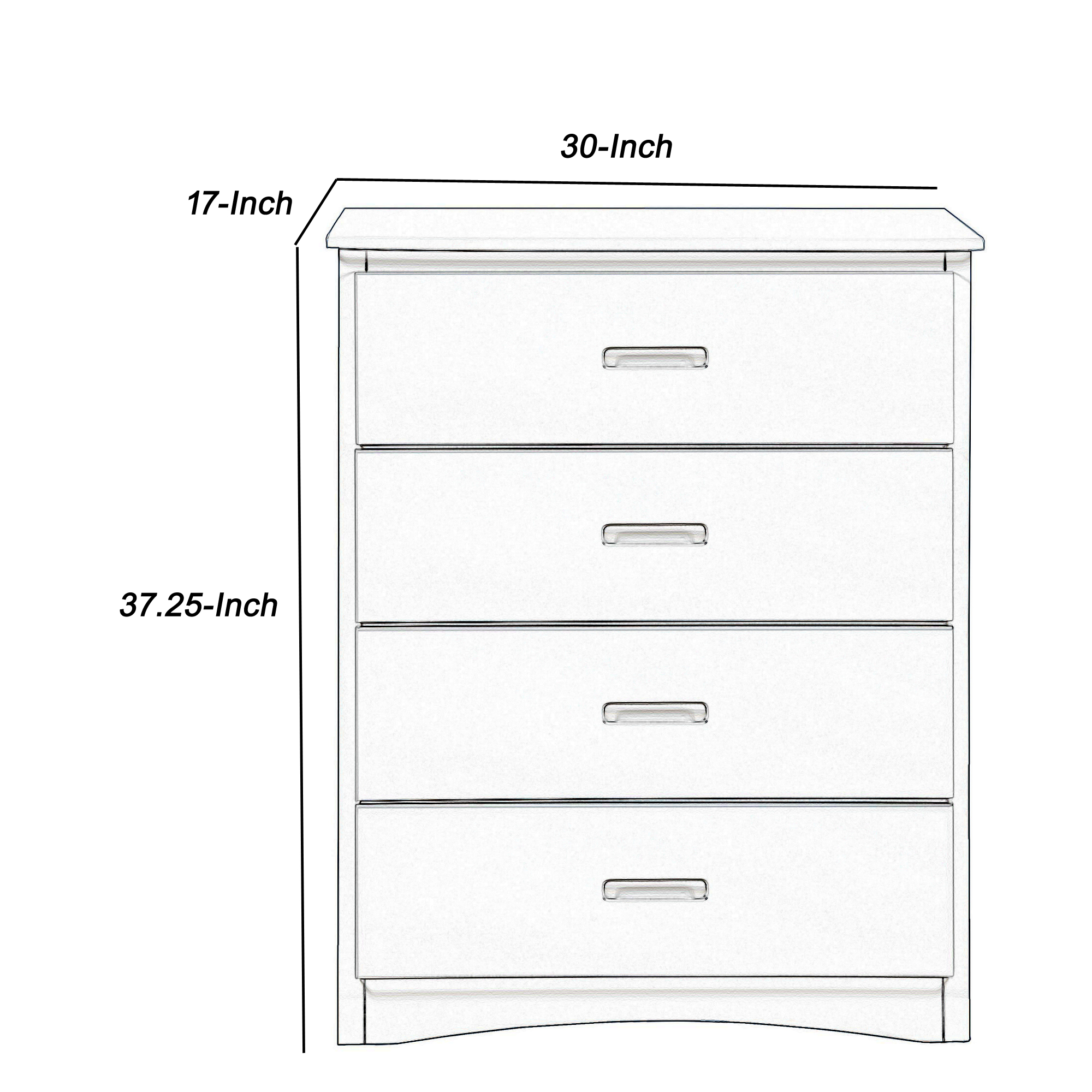 Compliment your bedroom with a touch of sophistication and style, a perfect option for your storage needs this Chest is constructed with solid wood and veneer in gray finish. Showcasing 4 smooth metal gliding drawers with recessed handles, completed with curved bottom base.