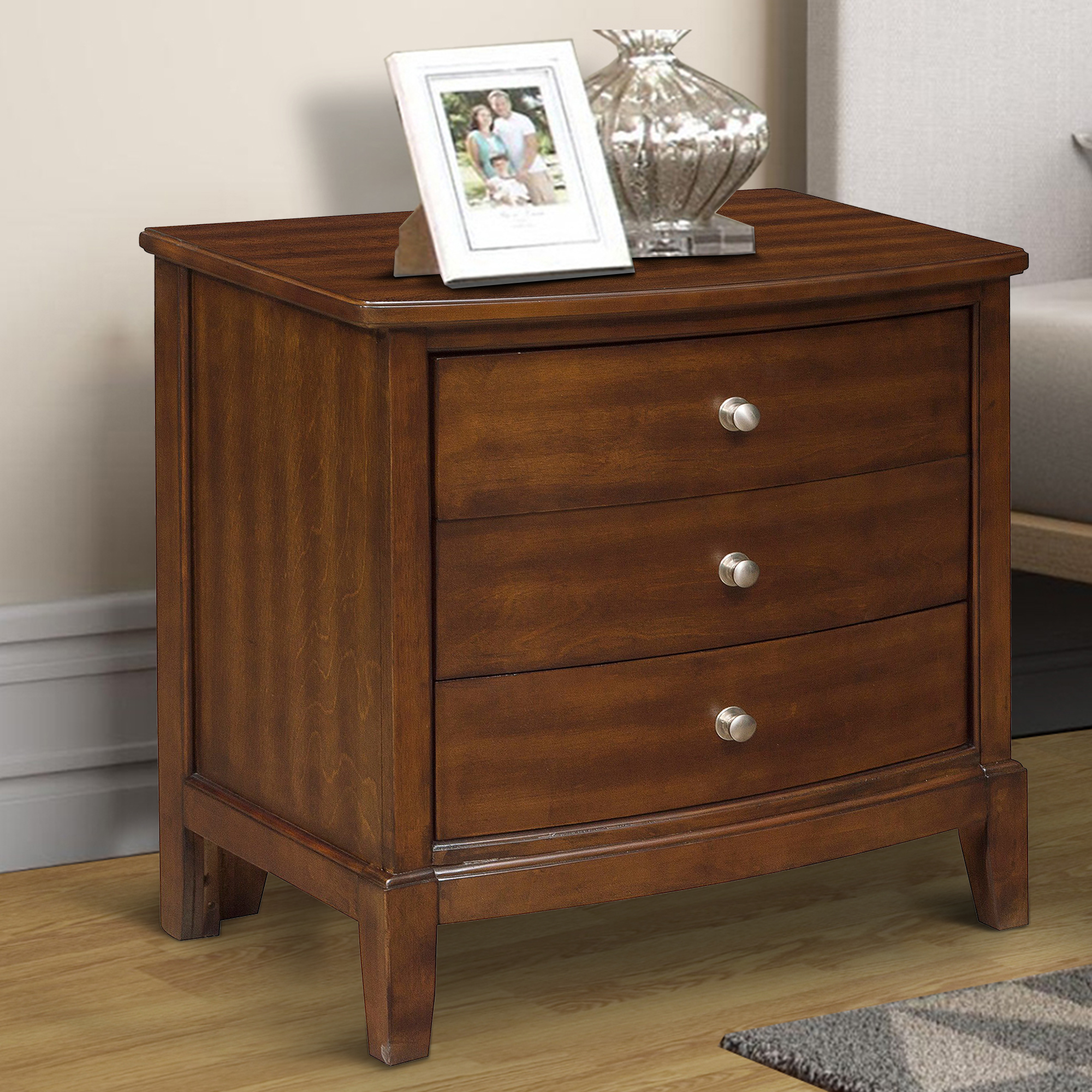 Home > Wooden Nightstand with 3 Spacious Drawers and Knobs, Brown