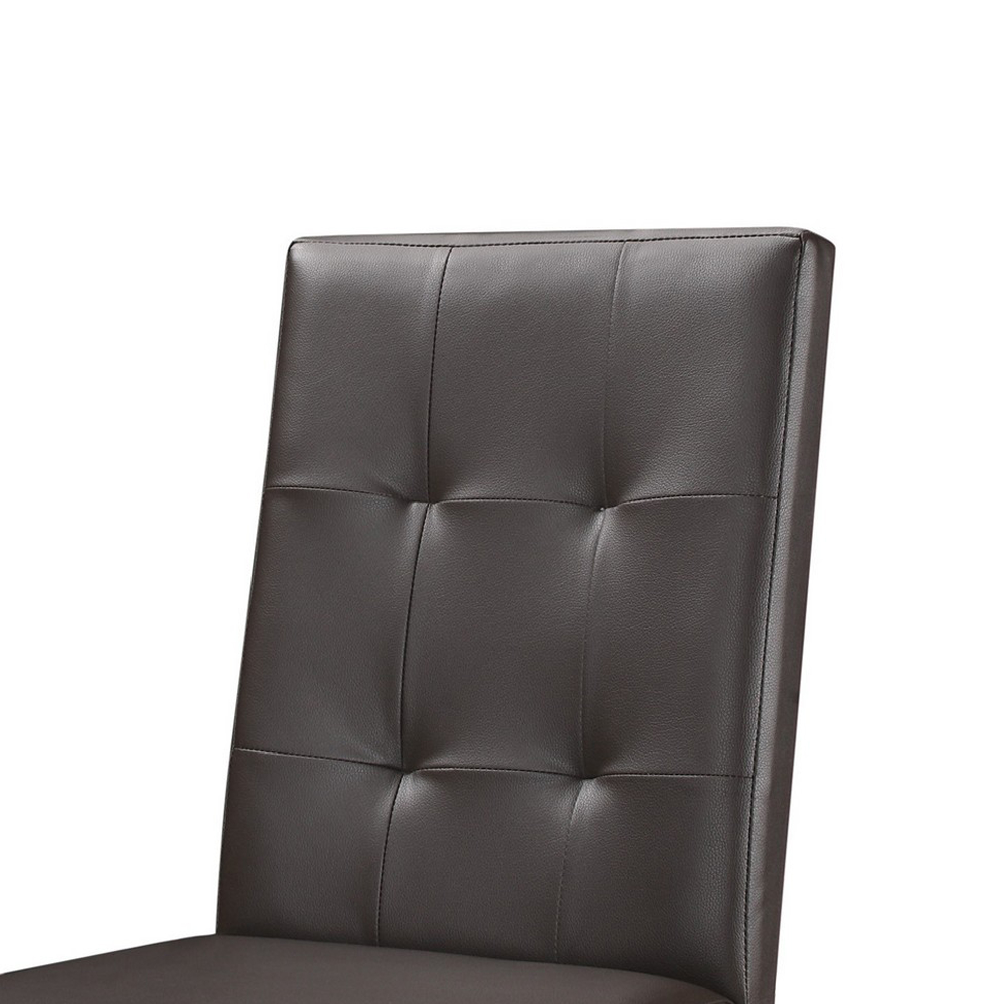 Leatherette Side Chair with Tufted Backrest, Set of 2, Espresso Brown
