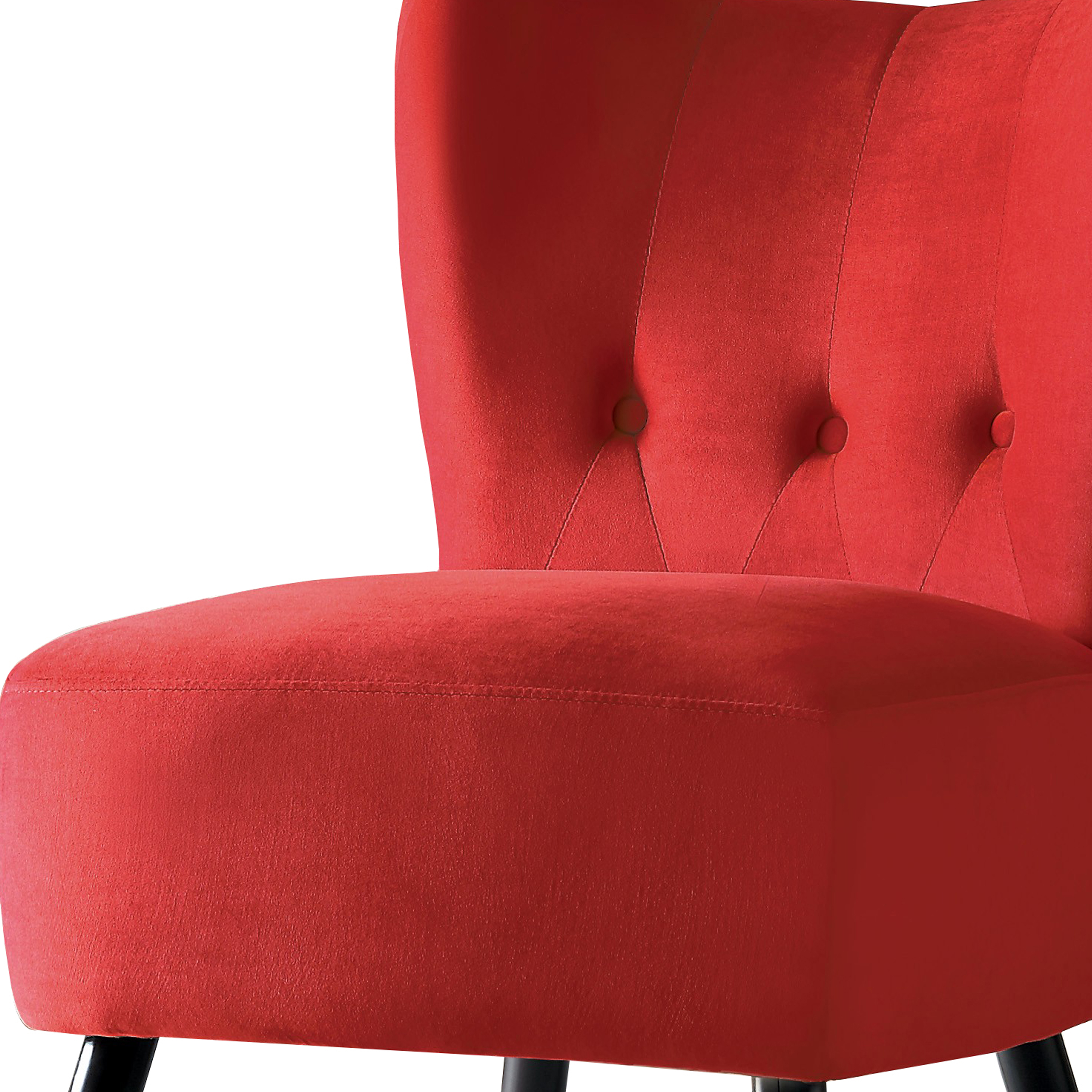 Bring tranquility in your living room with the setting up of this retro style Armless Accent Chair. Featuring velvet fabric upholstery in bold red finish, the Chair showcases button tufting details on the padded backrest, completed with angled legs.