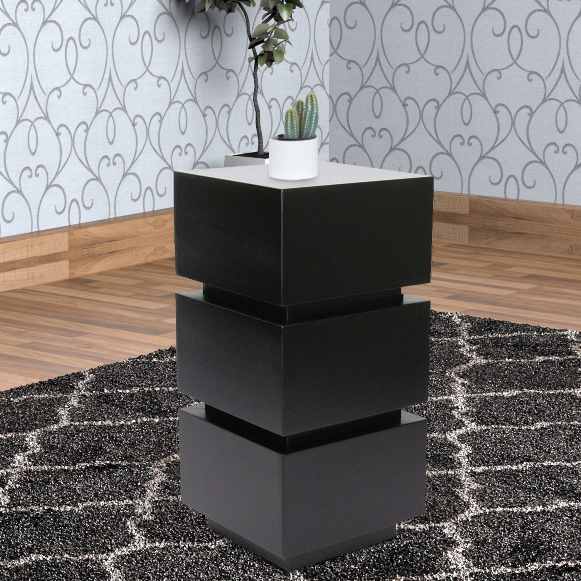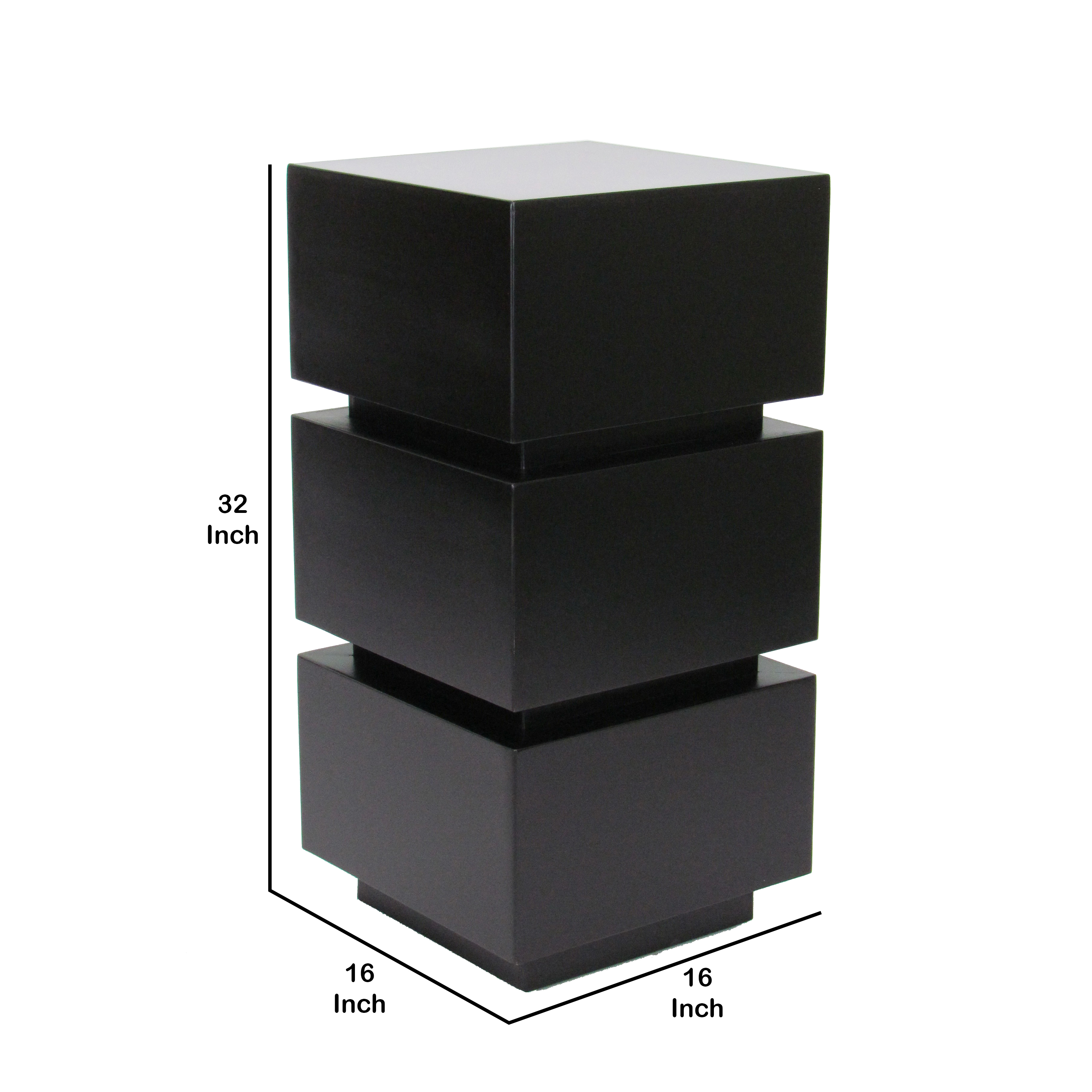Wooden Pedestal Stand in Stacked Cube Design, Antique Black