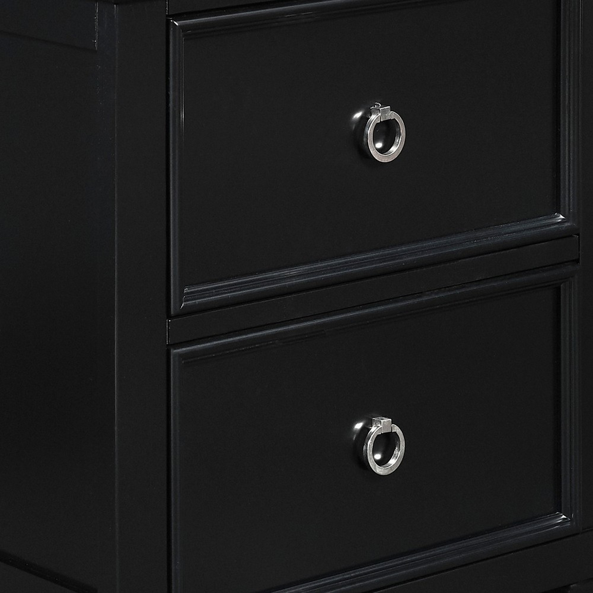Umi 2 Drawer Wooden nightstand with Tapered Legs and Metal Rings, Black
