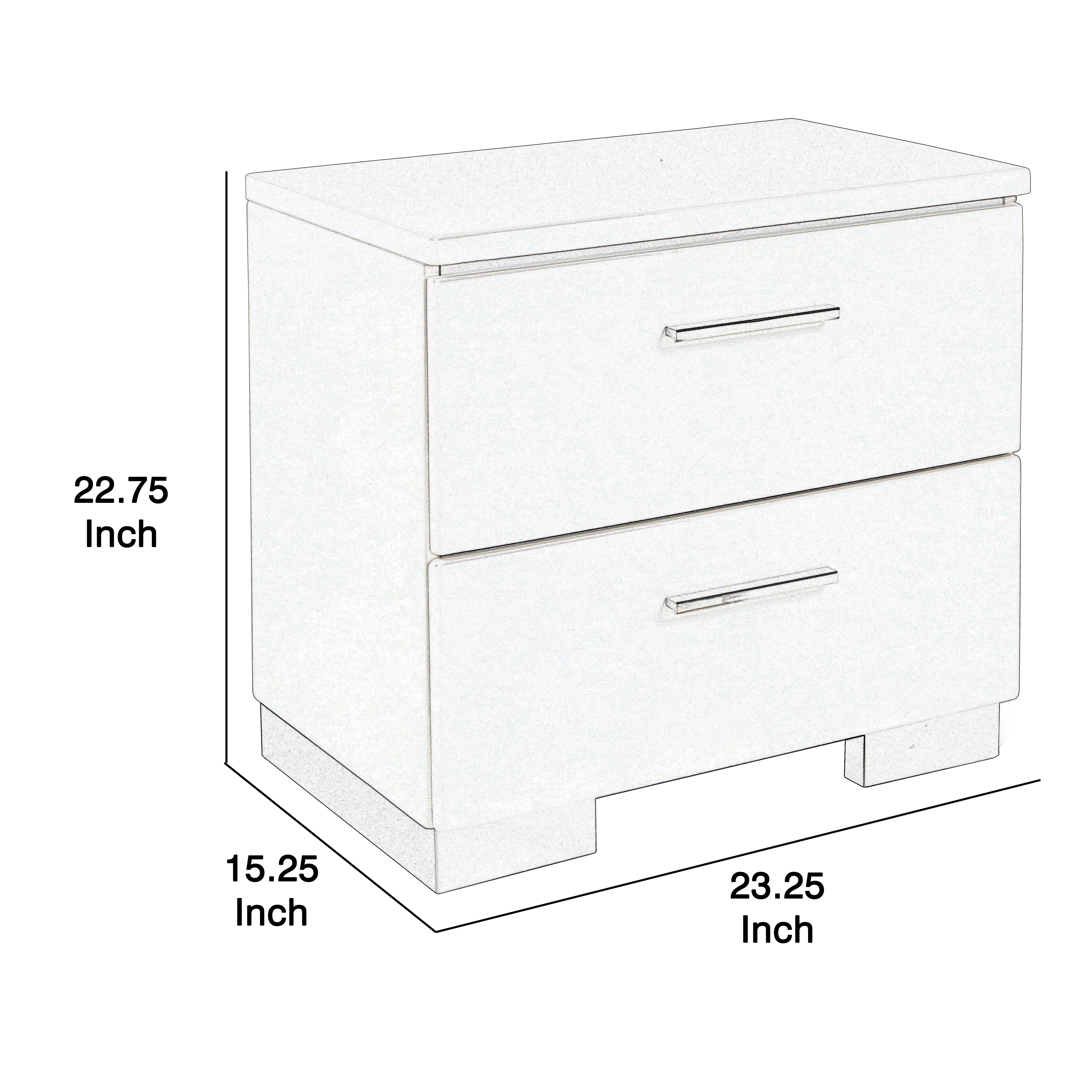 2 Drawer Wooden Nightstand with Metal Base and Bar Handles, White
