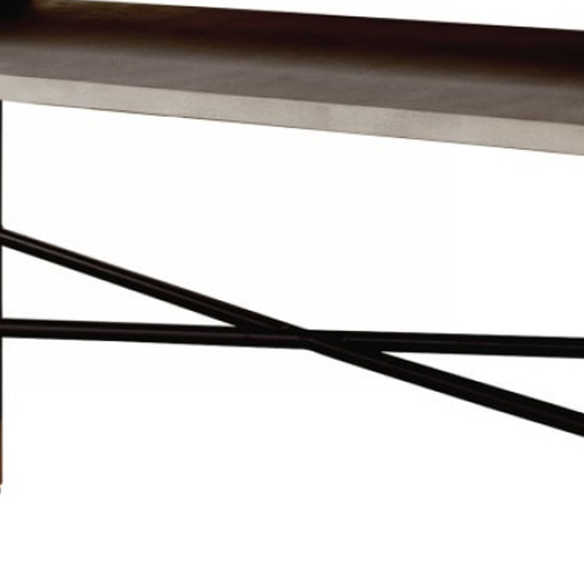 Home > Rectangular Console Table with Concrete Top and Metal Base, Gray and Black