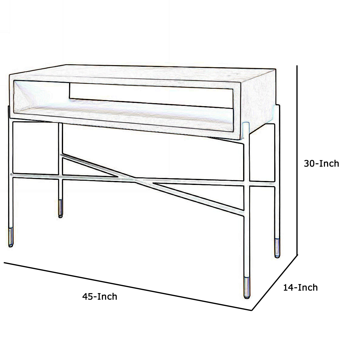 Rectangular Console Table with Concrete Top and Metal Base, Gray and Black