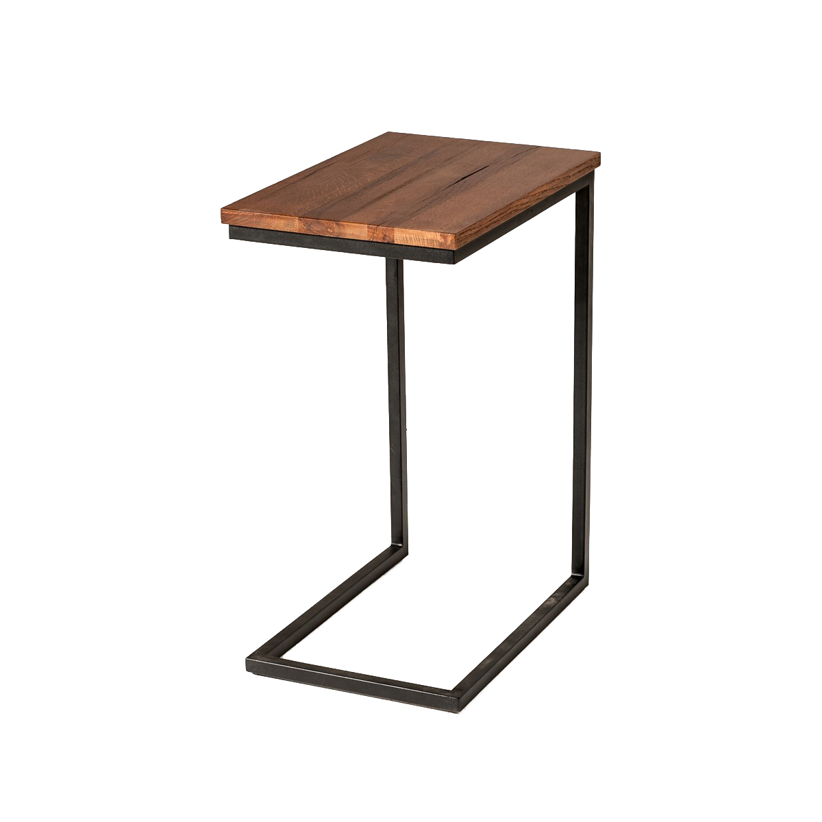 C Shaped End Table with Rectangular Wood Top, Brown and Black