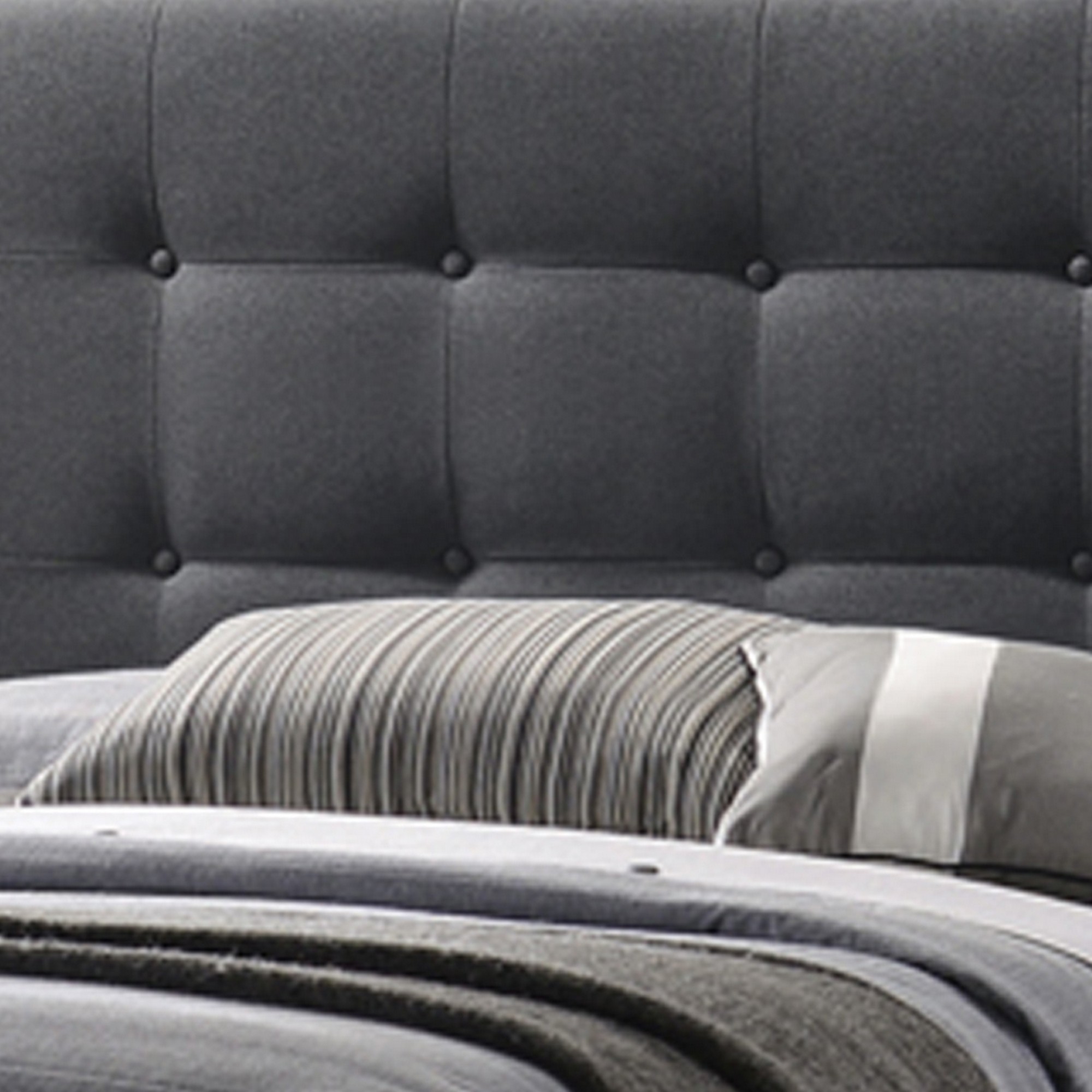 Home > Queen Size Bed with Square Button Tufted Headboard, Dark Gray