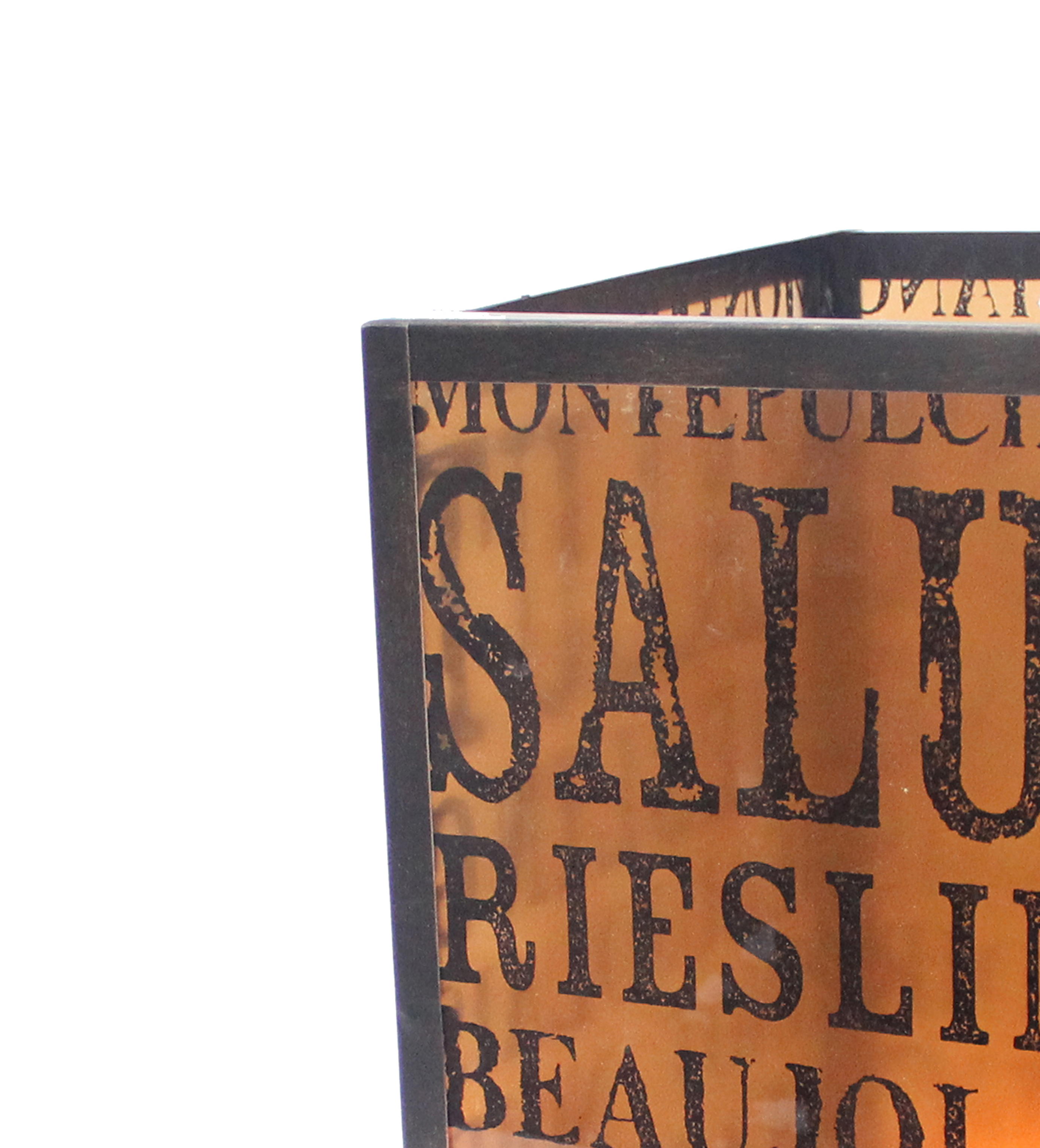 Cuboidal Metal and Glass Candleholder with Typography, Black and Clear