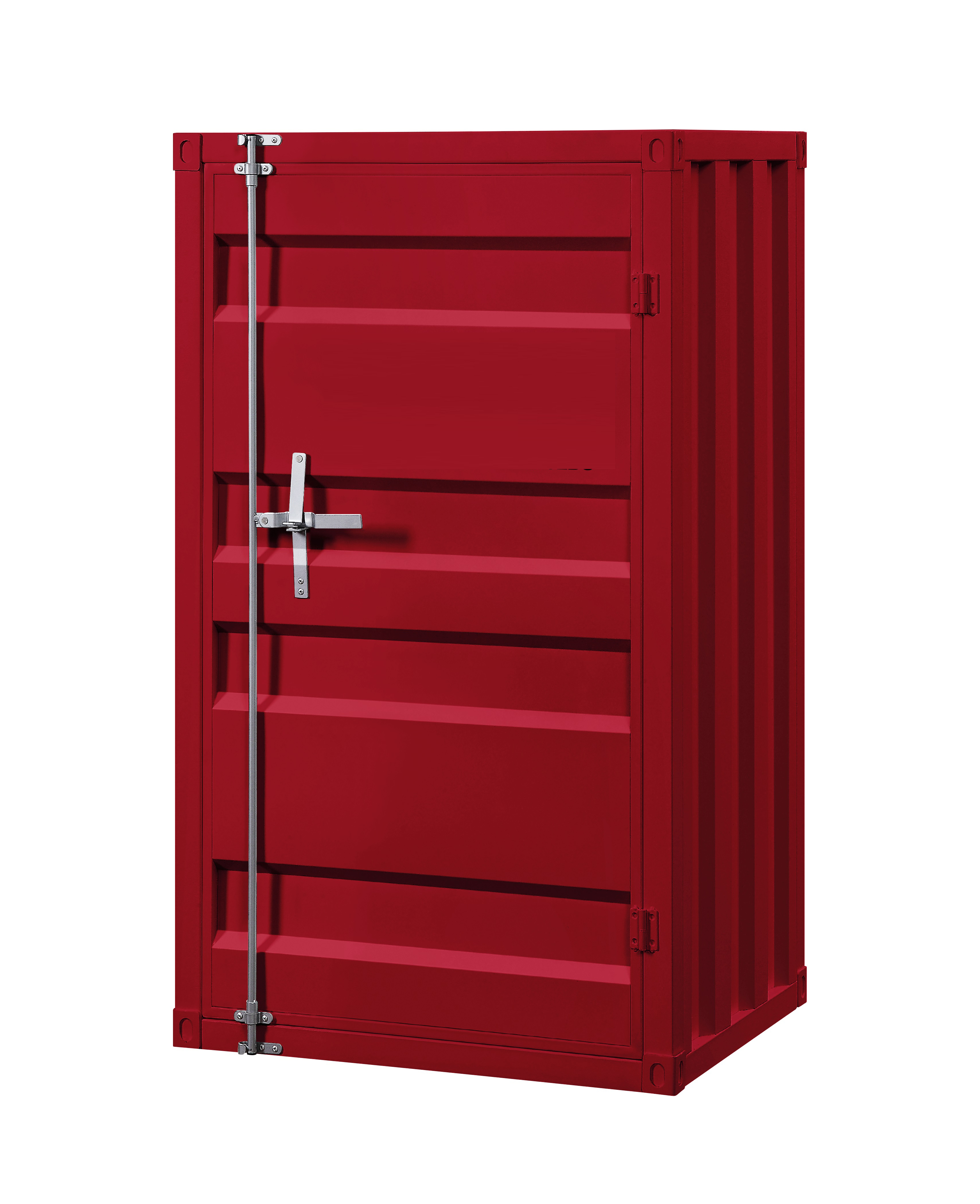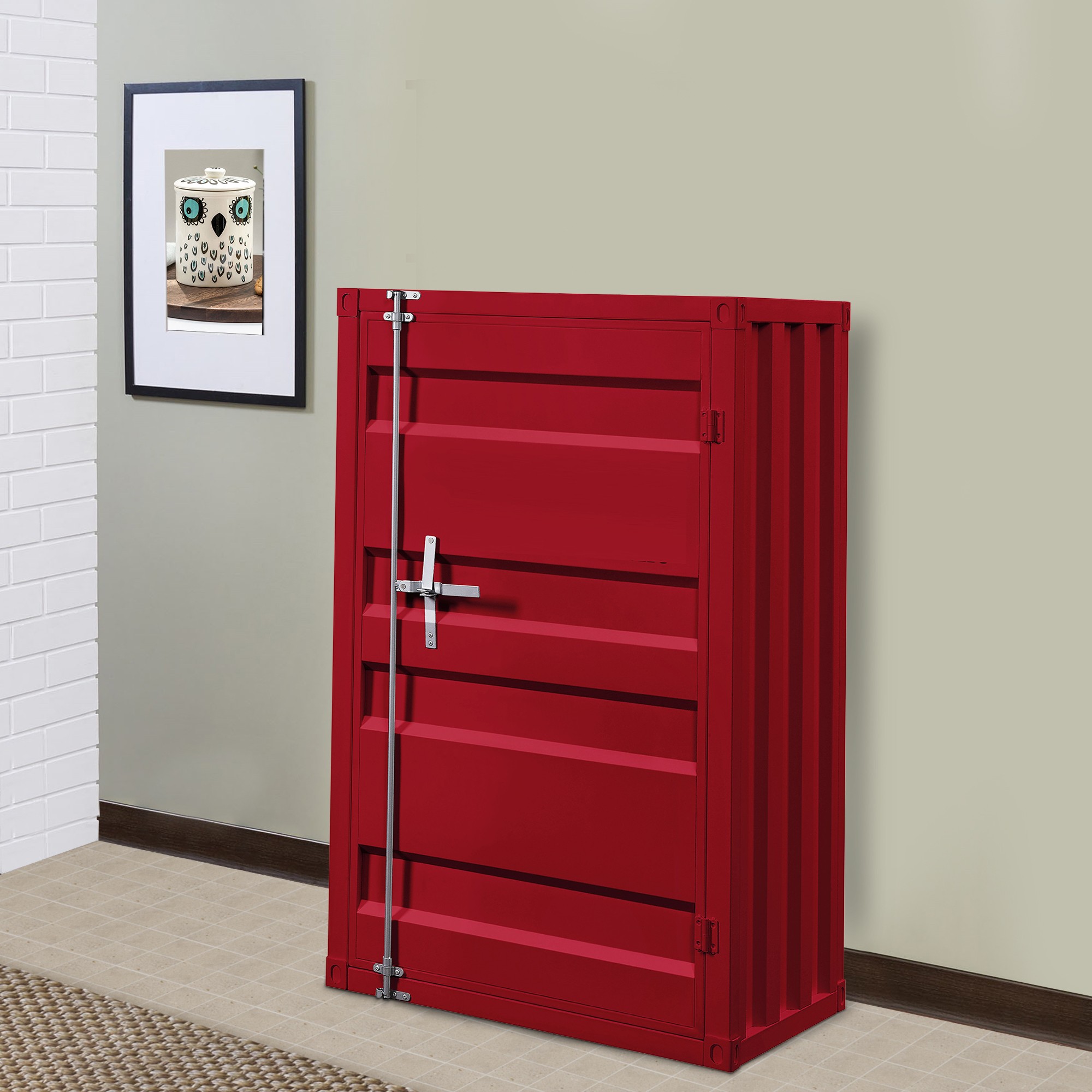Industrial Style Metal Base Single Door Chest with Slated Pattern, Red Industrial Style Metal Base Single Door Chest with Slated Pattern, Red