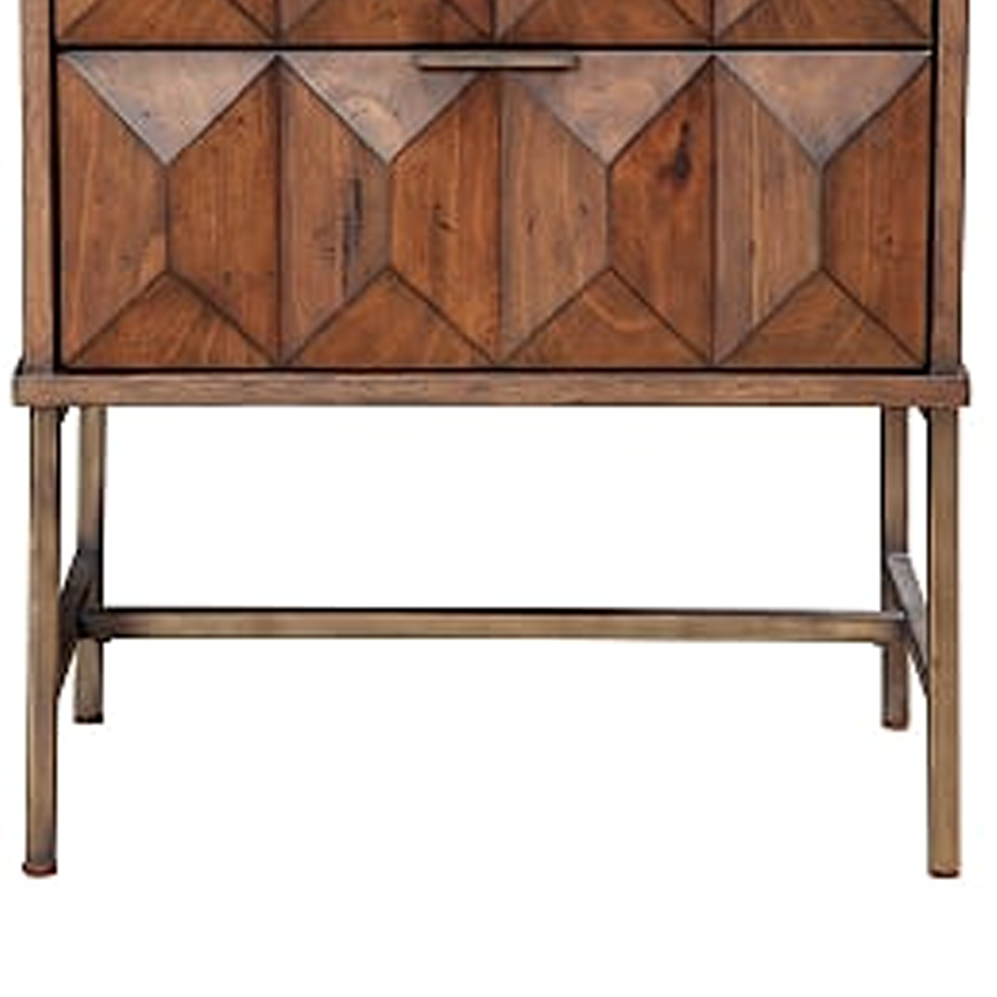 2 Drawer Nightstand with Honeycomb Design and Metal Legs, Brown