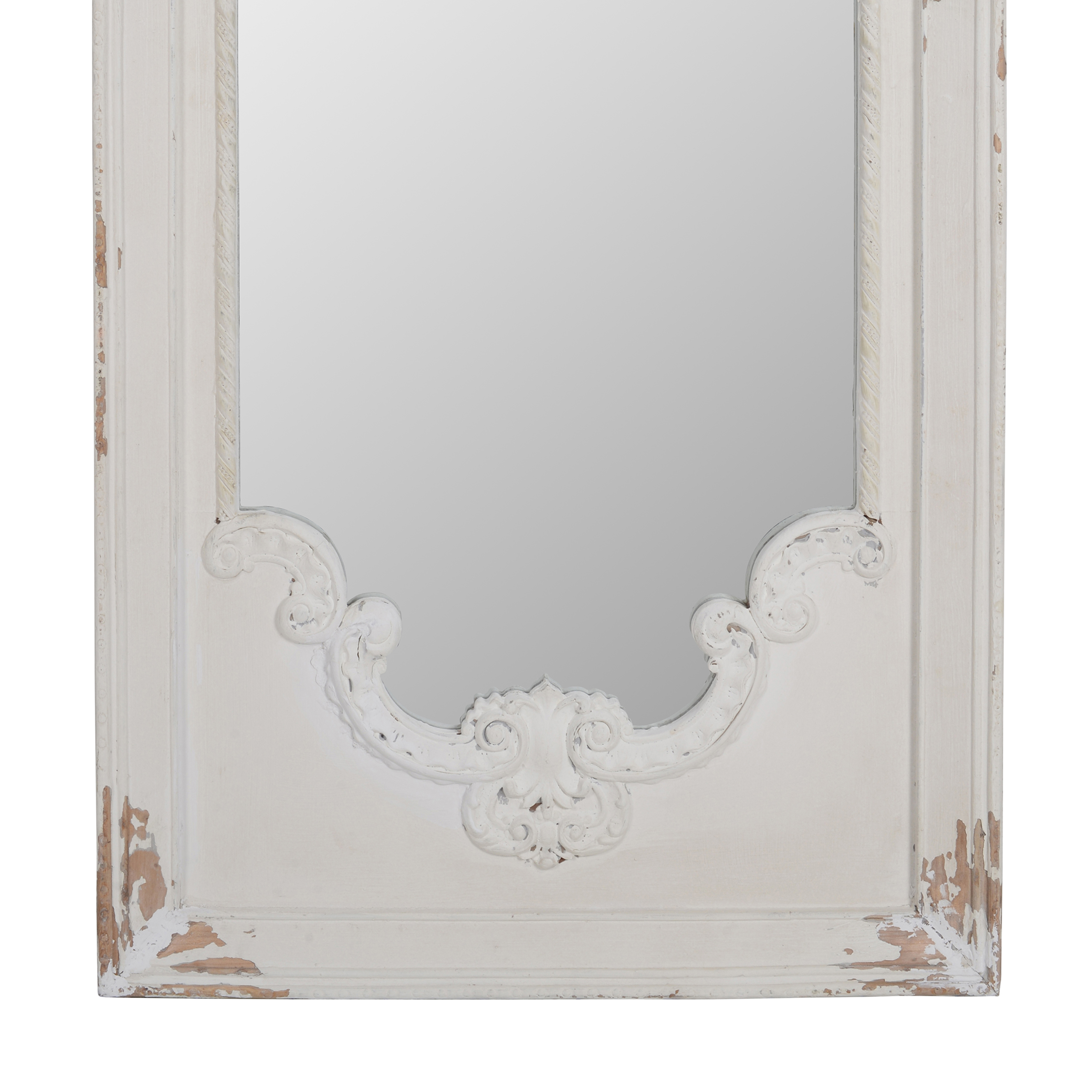 Incorporate this wall mirror on any wall of your home to create a warm focal point. Sturdy wood and magnesia backed up mirror constructed with artistic design, will probably appreciated by everyone visiting home. With chipped white color, this wall mirror will also give home interiors a touch of contemporary appeal. This also features hook at the back for easy hanging.