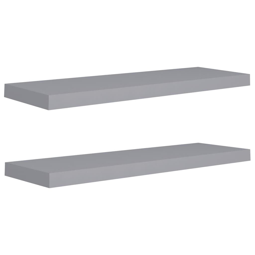 This pair of floating wall shelves is a smart storage option for modern spaces. Made from sturdy MDF in a stylish grey finish, they're perfect for showcasing books, collectibles, and decor in your living room, bedroom, or office.