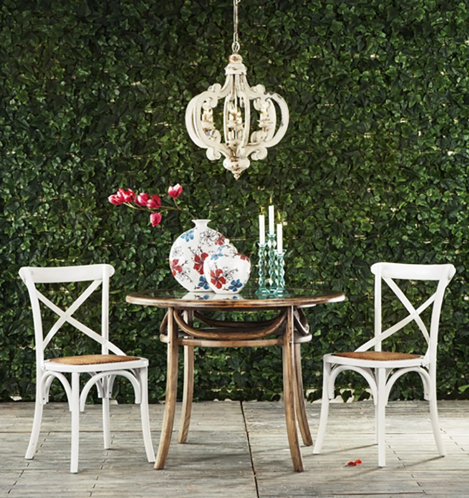With an intricate design and antique whitewashed finish, the Baroda Six-Light Chandelier radiates warm light in timeless, sophisticated style. Classic curves and neutral color combine to make this piece a versatile, eye-catching light fixture. Let this piece bring a vintage appeal to an entryway, master bathroom or dining room.