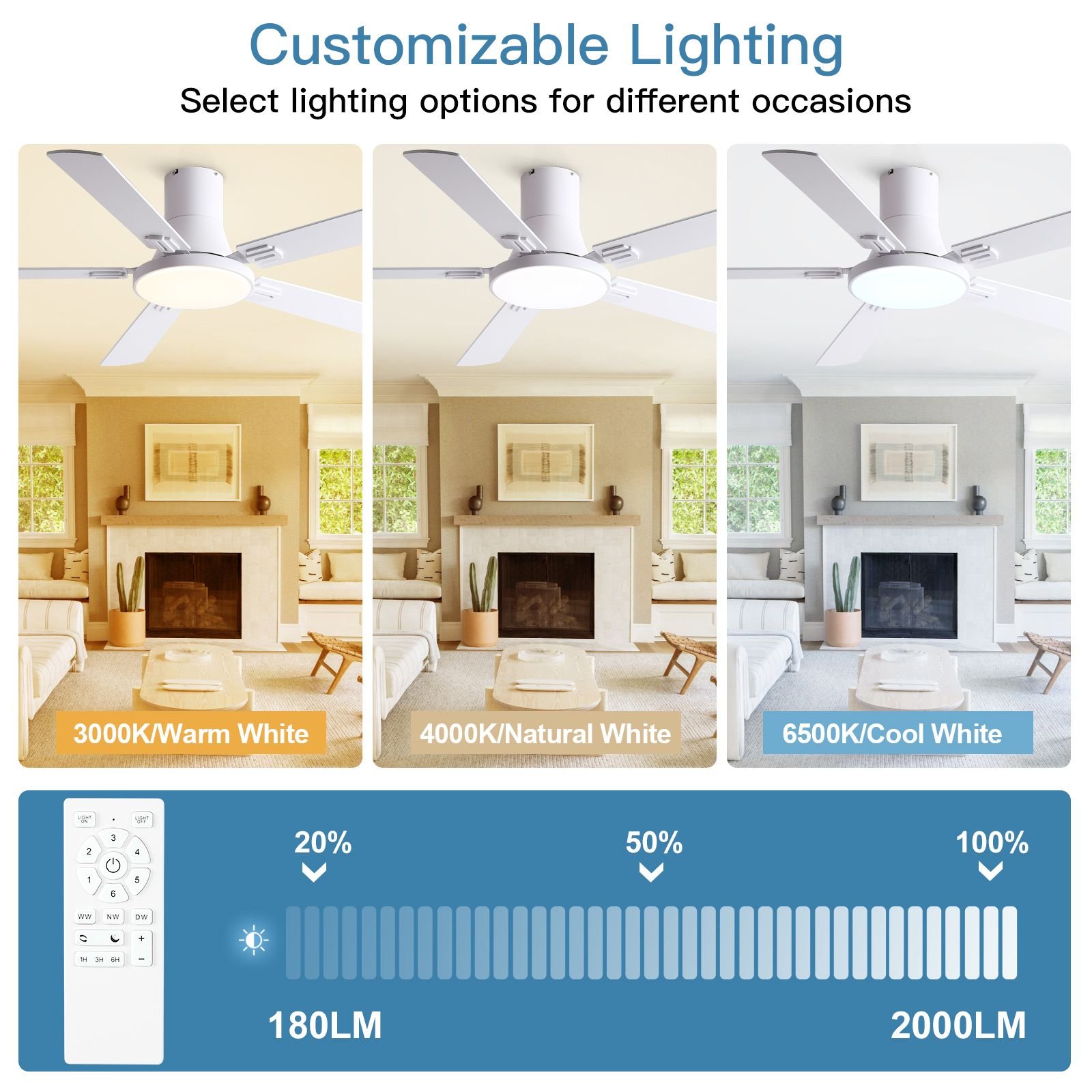 Add a touch of traditional elegance to your indoor living space with the YUHAO 52 in. ceiling fans. The Matter White ceiling fan has a powerful 3-speed motor designed to operate quietly while producing a significant amount of airflow. The 5 quick install blades are finished in plywood to blend with your decor. The white grass bowl light kit uses 24 watt dimmable LED which are included in the package. Feature-rich remote control with 3 motor speeds setting ,3 lights dimmable and fan timer.