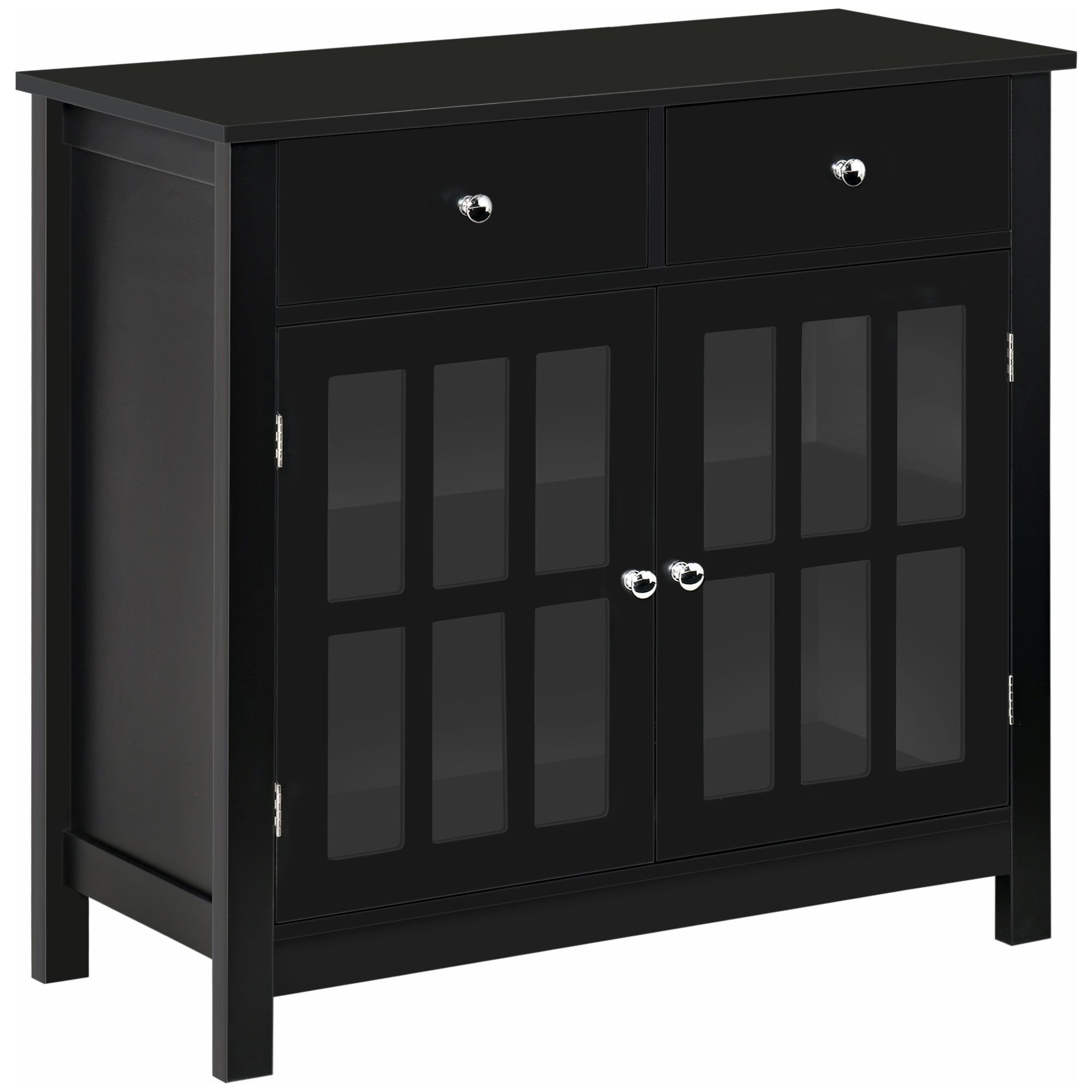 Creating a stylish storage option has never been so easy. This modern buffet cabinet from HOMCOM fits nicely with any decor, and you can use it in the kitchen, dining room, or living room to create additional storage. This kitchen cabinet storage unit comes with two drawers and an enclosed cabinet with a fixed shelf to store daily accessories, utensils, dry goods, plates, and dishes. Get a beautiful new piece of furniture with storage functionality with this storage sideboard from HOMCOM.