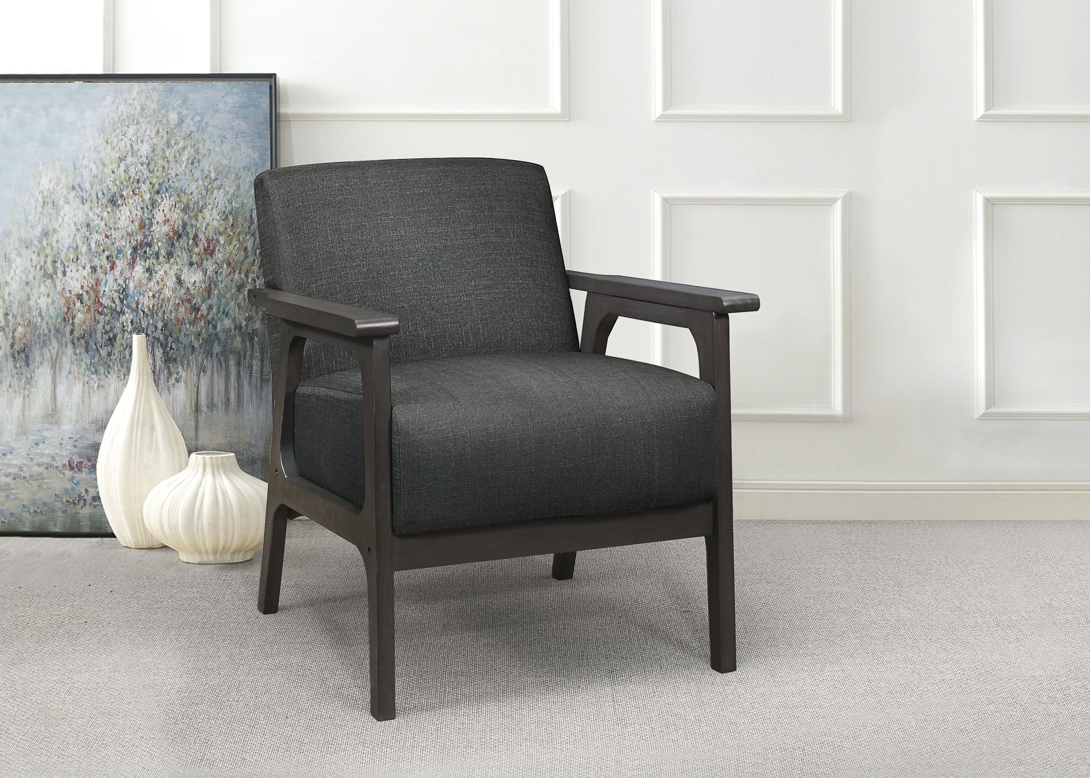 The frame of the Ocala Collection recalls a time when simplicity of profile was the height of style. The streamlined design of the wood arms and legs is finished in an antique gray which serves to highlight the dark gray textured fabric covering.PRODUCT DIMENSIONS: Overall Dimension: 27.5" x 31" x 32"HSeat Width: 22"Seat Depth: 21.5"Seat Height: 19.25"Arm height: 24.25"Listing Includes: One Accent Chair Only.Simple Assembly Require.