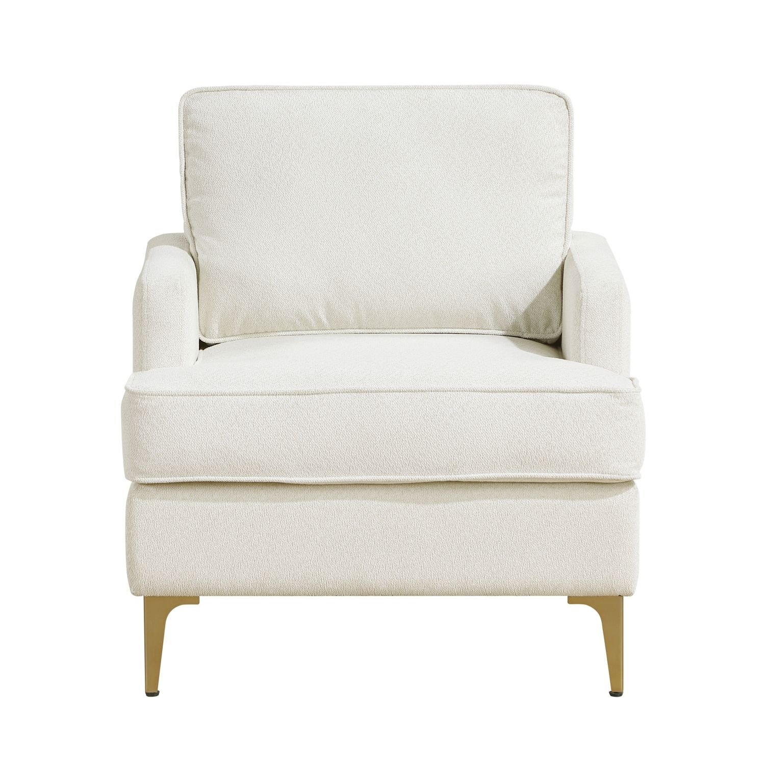 Home > Modern Comfort Accent Chair 1pc Beige Chenille Upholstery Gold Finish Metal Legs Living Room Furniture Durable Plywood