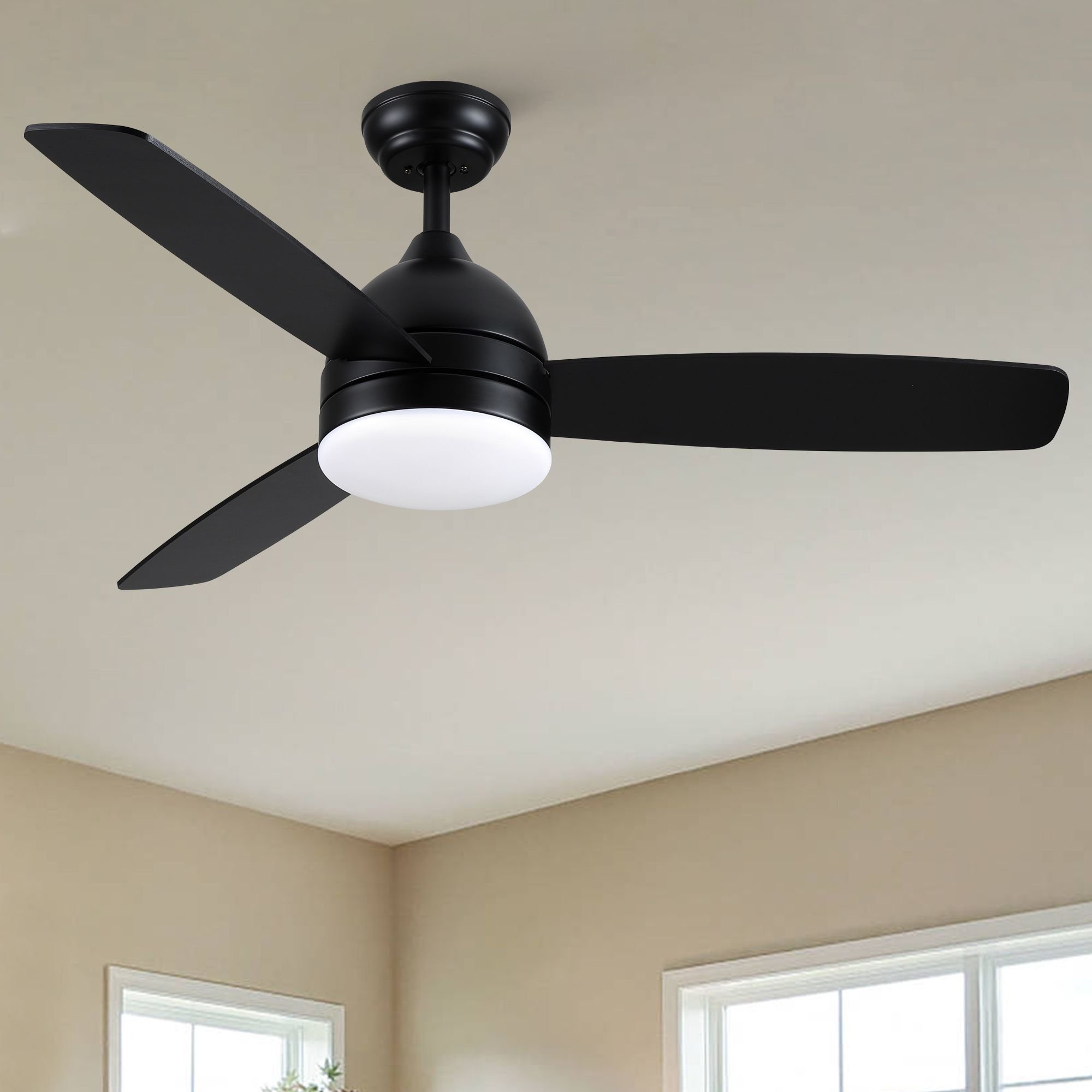 Yamiyu Modern 48 in. Indoor Matte Black Downrod Smart Ceiling Fan with Integrated LED