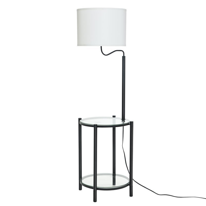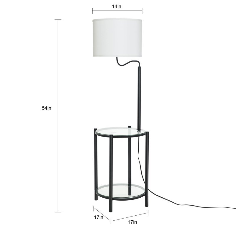 Discover the perfect mix of style and function with our Glass End Table Floor Lamp. Featuring a matte black finish and a modern design, this lamp complements any decor style. The integrated glass end table provides a convenient surface for your essentials, while the white drum shade adds a touch of elegance. Standing at 54 inches tall and measuring 17 inches in diameter, it is a versatile addition to any room, suitable for various ages. Elevate your space with this modern and practical lighting solution. TL74508WMDO.* Sleek Matte Black Finish* Modern Design* Integrated Glass End Table* White Drum Shade* Versatile Size* Practical Lighting Solution* Easy to Assemble* 17"L x 17"W x 54"H
